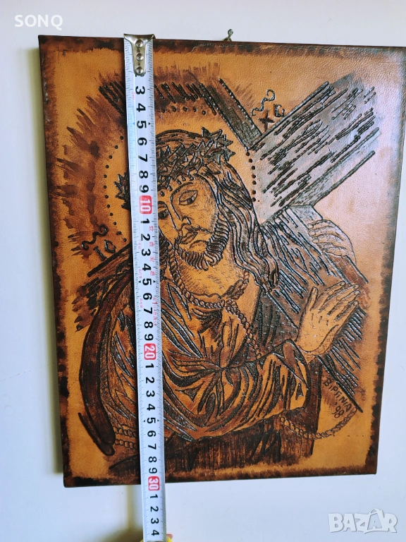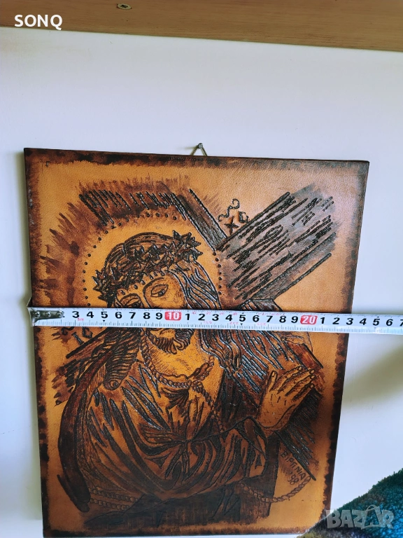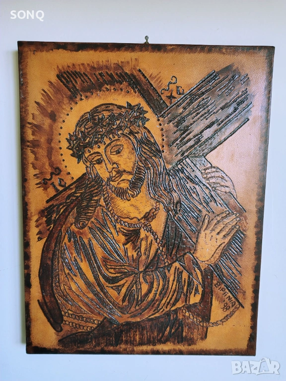 Икона На Исус Христос С Трънен Венец Пирография Върху Дърво → Обява 53668894