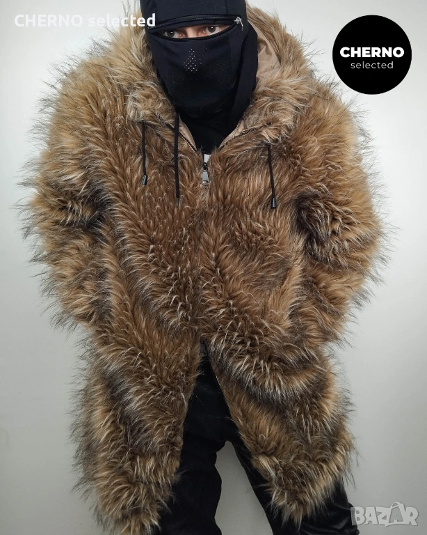 URBANCODE LONDON мъжко дълго яке • палто от изкуствен косъм с качулка – размер L – Ново без етикети
