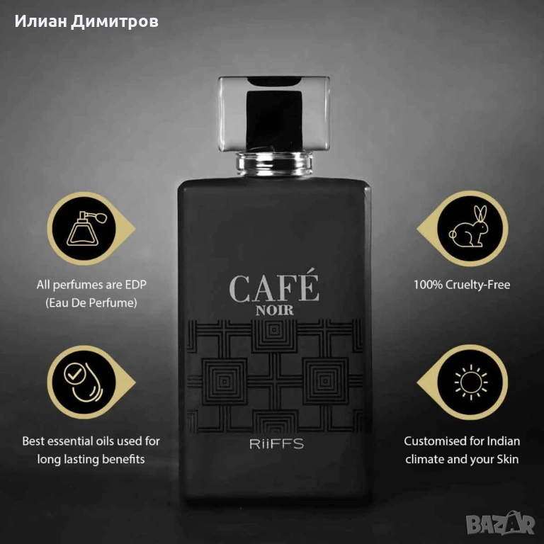 Оригинален Арабски парфюм Café Noir RiiFFS Eau De Perfume For Men - 100ml / Личността на човек се откроява основно чрез ароматите, затова ако желаете да бъдете най-изящната личност в групата, изберете този парфюм. Той разполага с богат аромат, подходящ за всякакви поводи, било то официална среща или просто излизане с приятели. Този аромат създава уникален ефект. Идеален за ежедневна употреба, този парфюм е вдъхновение. Вие вършите велики неща и вдъхновявате света да се стреми да бъде като вас всеки ден. Ароматът му е дълготраен и помага за подчертаване на вашата личност, придавайки различен оттенък на вашата аура.
