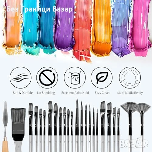 Ново H&B 24 броя комплект четки за рисуване акрил масло акварел + калъф