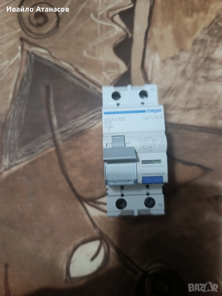 ОПИСАНИЕ: Продавам комбиниран автоматичен прекъсвач с дефектнотокова защита (RCBO) Hager, модел ADA510D. Изключително компактен модел (1 модул), който комбинира защитата от претоварване и късо съединение с защитата на хора от токов удар. Подходящ за икономия на място в ел. табла. ТЕХНИЧЕСКИ ХАРАКТЕРИСТИКИ: • Производител: Hager • Модел: ADA 510D • Тип: RCBO (Комбиниран прекъсвач + ДТЗ) • Брой полюси: 1P+N (в 1 модул ширина) • Номинален ток: 10A • Крива на изключване: B • Ток на утечка (Idn): 30mA (висока чувствителност) • Клас на ДТЗ: Тип A (защита от променлив и пулсиращ постоянен ток) • Изключвателна способност: 6kA • Номинално напрежение: 240V AC • Монтаж: На стандартна DIN шина • Индикация: Наличен визуален индикатор за изключване и бутон за тест РАЗМЕРИ: • Ширина: 17.5 mm (1 модул) • Височина: 92 mm • Дълбочина: 70 mm СЪСТОЯНИЕ: • Втора употреба, в много добро състояние. • Тестван механично и чрез бутона "Test". • Подходящ за защита на токови кръгове за осветление или по-малки консуматори.