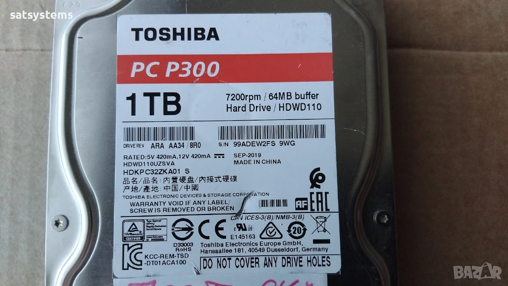 Хард диск Toshiba PC P300 HDWD110 1TB SATA 6.0Gb/s