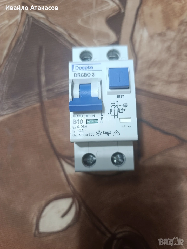 Продавам висококачествен комбиниран автоматичен прекъсвач с дефектнотокова защита (RCBO) на немския производител Doepke, серия DRCBO 3. Устройството комбинира в себе си защита от претоварване, късо съединение и защита на хора (утечки), като същевременно заема минимално място в таблото. Серията е известна със своята прецизност и надеждност. ТЕХНИЧЕСКИ ХАРАКТЕРИСТИКИ: • Производител: Doepke (Германия) • Модел: DRCBO 3 B10 • Тип: RCBO (Combined MCB/RCCB) • Брой полюси: 1P+N (еднополюсен с прекъсваема нула) • Номинален ток: 10A • Крива на изключване: B • Ток на утечка (Idn): 30mA (0.03A) – висока чувствителност • Изключвателна способност: 6kA • Номинално напрежение: 230V AC • Степен на защита: IP20 (IP40 при монтаж в табло) • Монтаж: Стандартна DIN шина (35 mm) • Работна температура: от -25°C до +40°C РАЗМЕРИ: • Ширина: 35.4 mm (2 модула) • Височина: 85 mm • Дълбочина: 75 mm СЪСТОЯНИЕ: • Втора употреба, демонтиран от професионално изградено ел. табло. • Отлично техническо състояние, тестван механично. • Високо надежден компонент, подходящ за жилищни помещения, офиси или индустриални приложения.