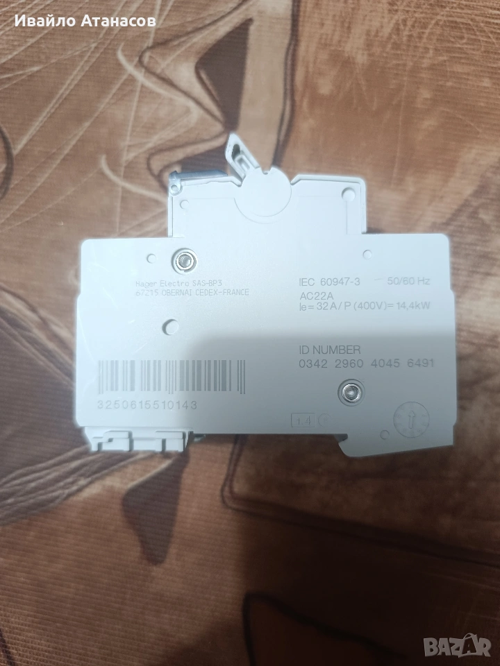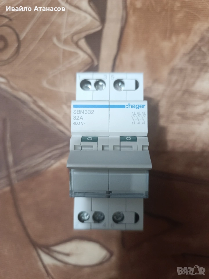 Продавам трифазен модулен разединител Hager, модел SBN332. Устройството е предназначено за ръчно превключване на товарни вериги и се използва като главен прекъсвач в разпределителни табла. Отличава се с висока надеждност и дълъг експлоатационен живот. ТЕХНИЧЕСКИ ХАРАКТЕРИСТИКИ: • Производител: Hager • Модел: SBN 332 • Тип: Разединител (Switch disconnector) • Брой полюси: 3P (триполюсен) • Номинален ток (In): 32A • Номинално напрежение (Ue): 400V AC • Категория на използване: AC-22A (за смесени товари) • Номинално импулсно напрежение (Uimp): 4000V • Монтаж: На стандартна DIN шина • Степен на защита: IP20 • Механична издръжливост: 200 000 цикъла (изключително издръжлив модел) РАЗМЕРИ: • Ширина: 35 mm • Височина: 83 mm • Дълбочина: 68 mm СЪСТОЯНИЕ: • Втора употреба, демонтиран от работещо табло. • Отлично визуално състояние, плавно движение на лоста. • Подходящ за главна изолация на захранването в подтабла или машини.