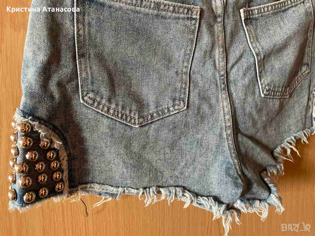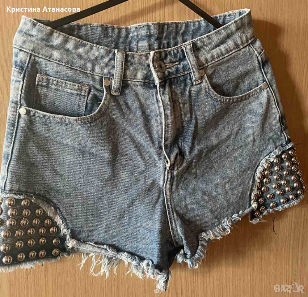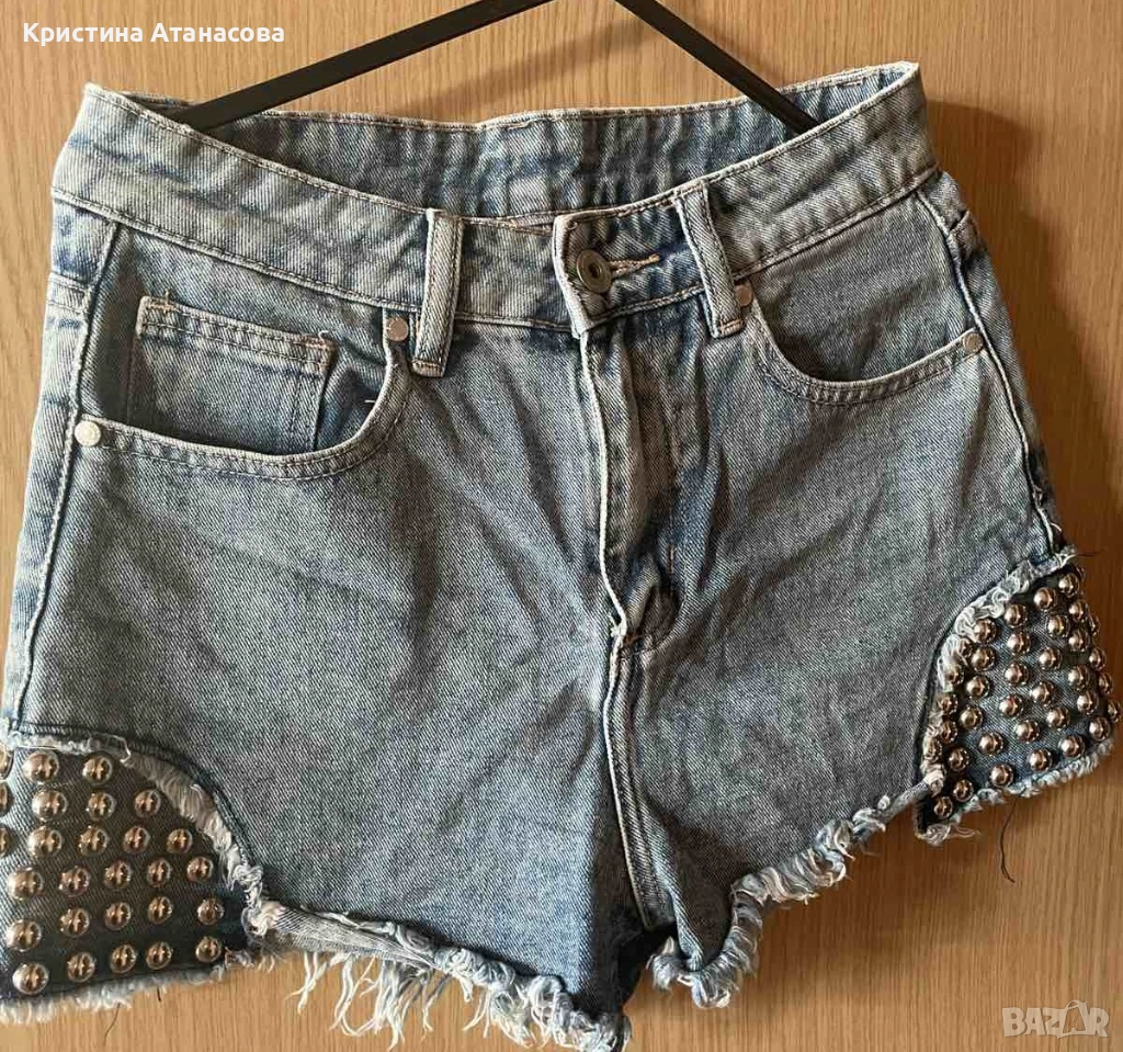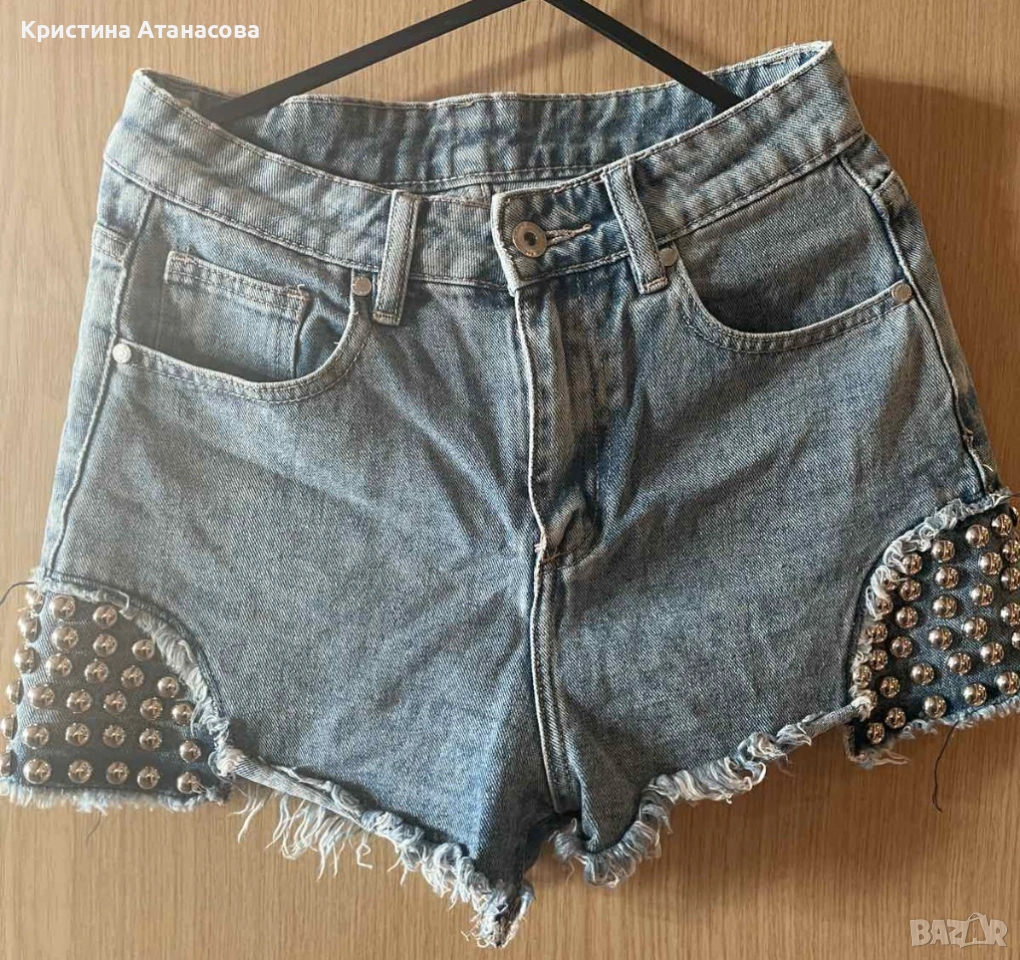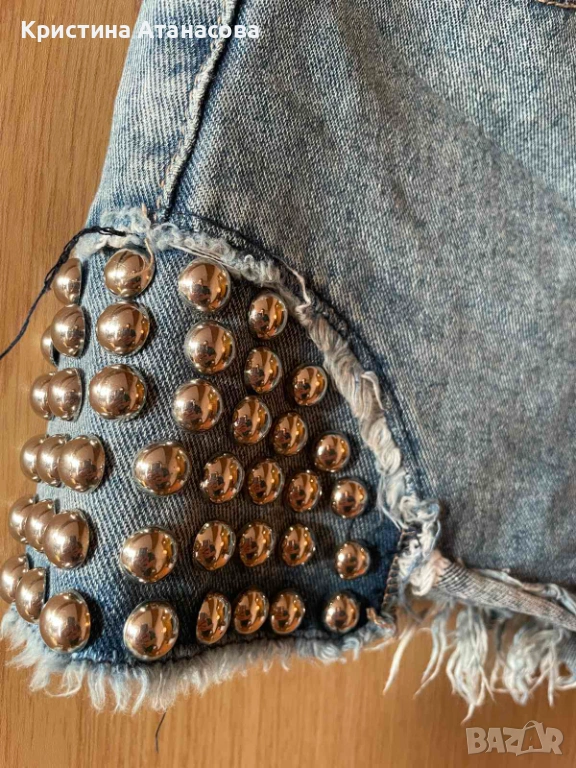 πŸ‘–βœ¨ Дамски дънкови къси ΠΏΠ°Π½Ρ‚Π°Π»ΠΎΠ½ΠΊΠΈ с капси β†’ Обява 53669737