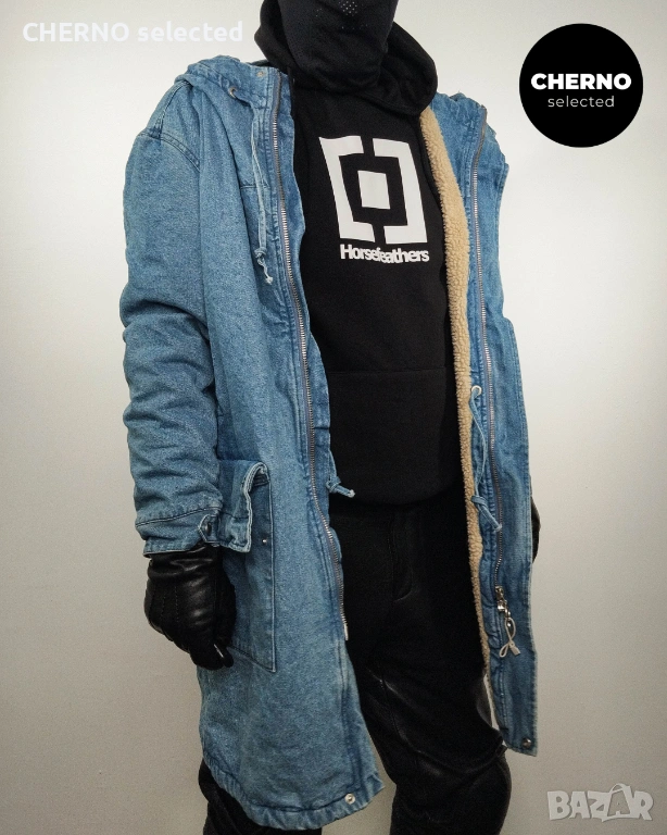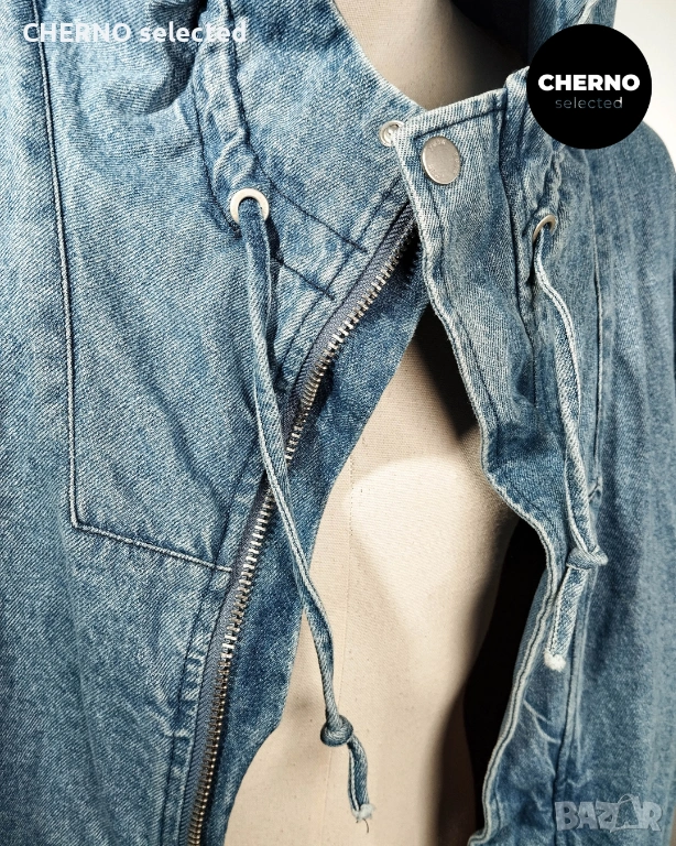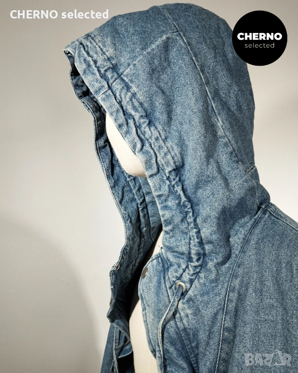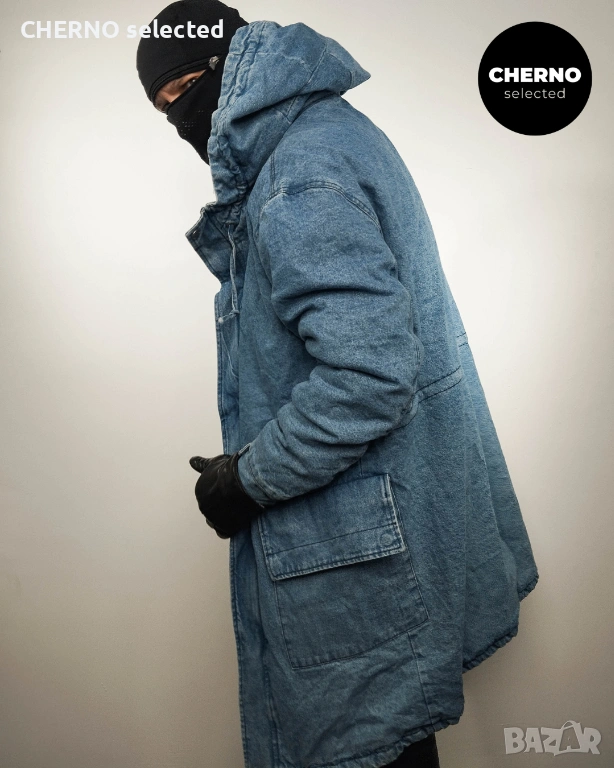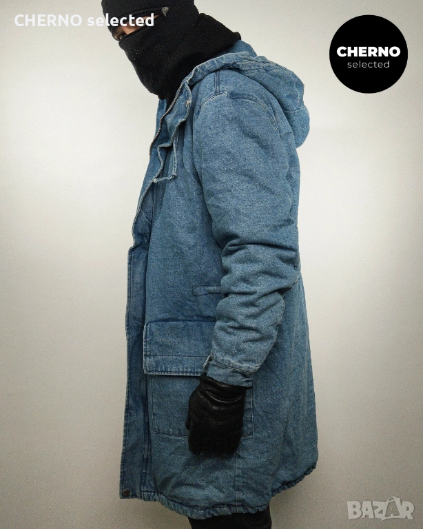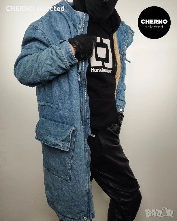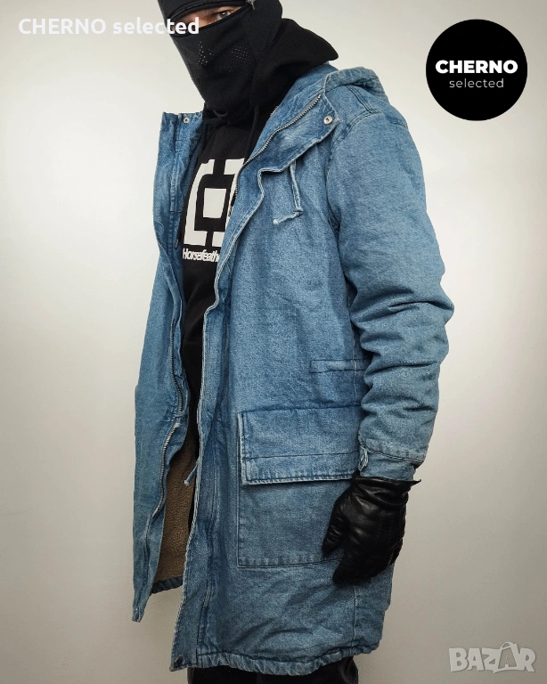 Дълго дънково яке от Zara, съчетаващо плътен и здрав памучен деним с топла шерпа подплата. Свободният oversizedсилует и функционалните детайли я правят отличен избор за студените сезони.