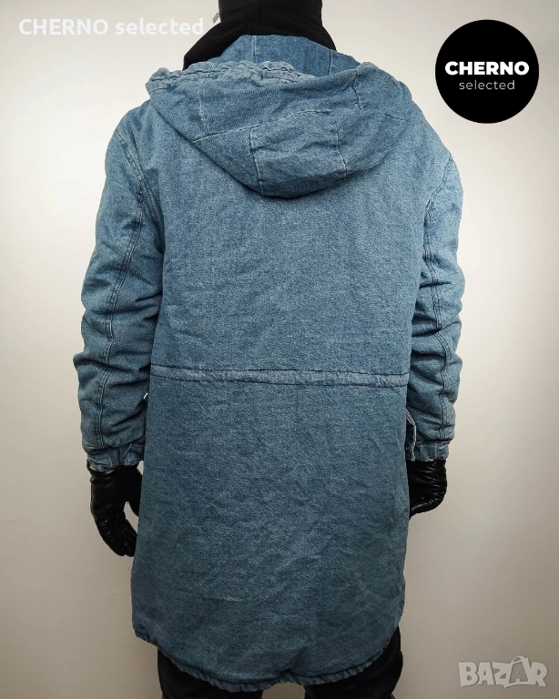 скъсан шев на хастара на вътрешния джоб) | Размер: L•XL (обозначен L) | Кройка: Свободна • Relaxed fit| Цвят: Син | Материя: Външна част: 100% памук | Хастар:100% полиестер | Пълнеж: 100% полиестер | Сезон: Есен • Зима • Ранна пролет