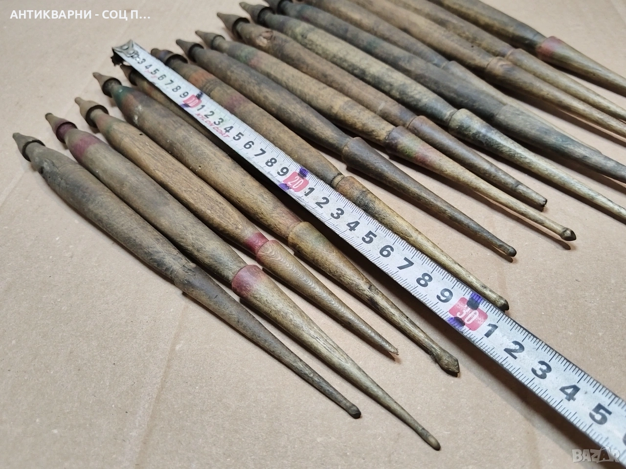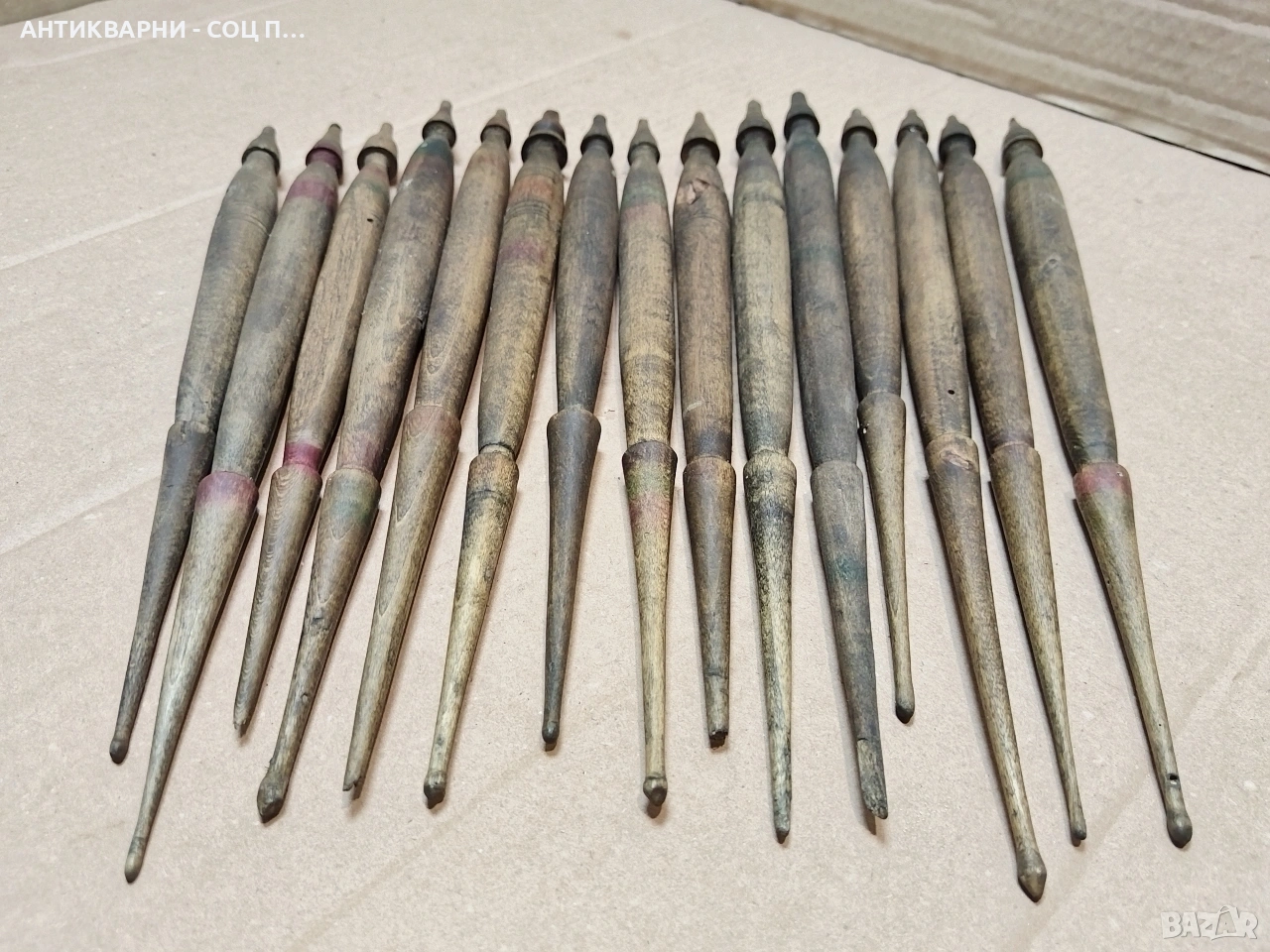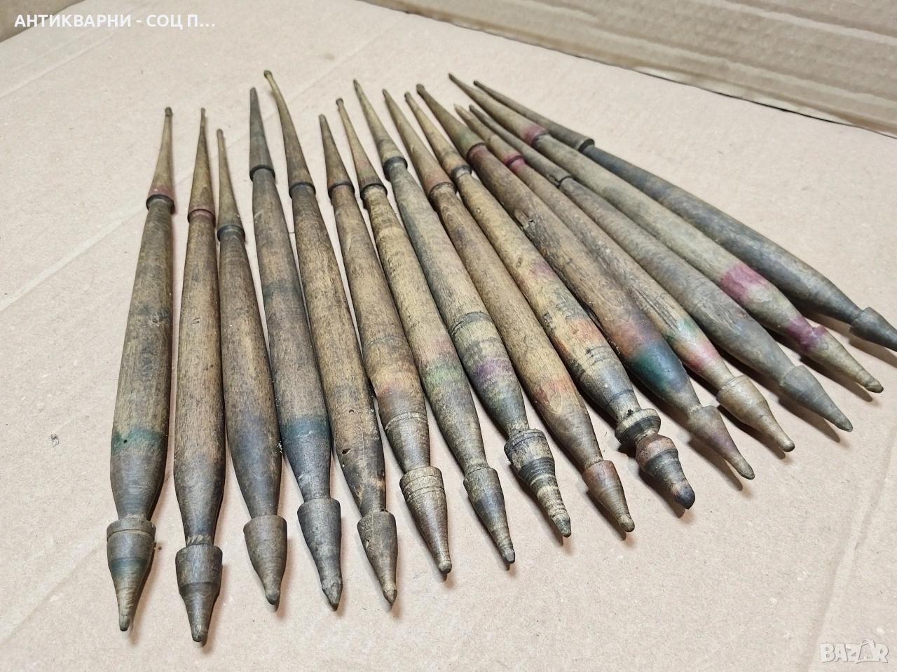 Здравейте - Продавам Комплект Стари Ръчно Изработени Дървени Вретена За Прежда / 15 Броя.