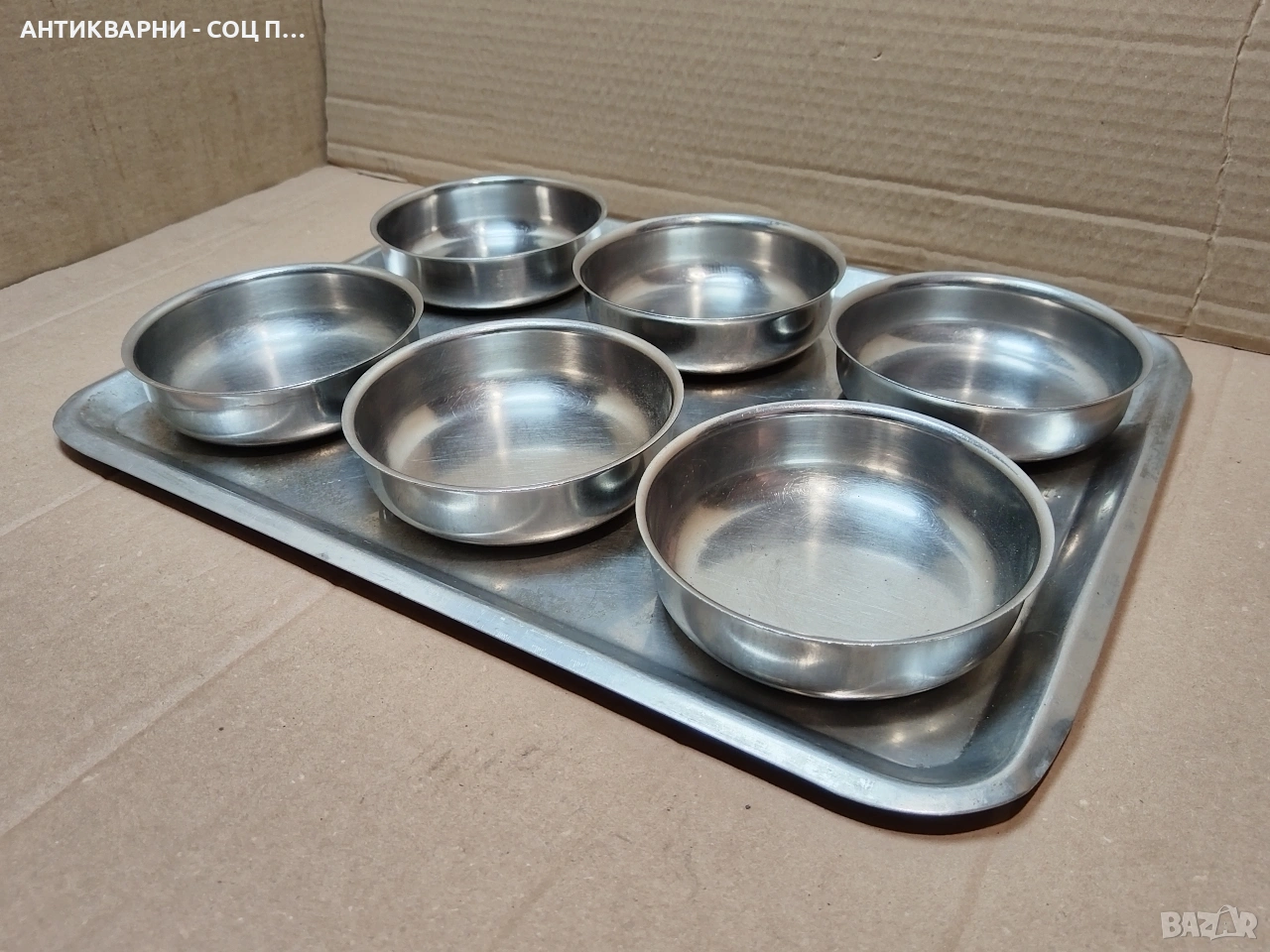 Здравейте - Продавам Комплект Стар Соц Хром Сервиз, Хром Десертни Купички 6 Броя + Хром Поднос.