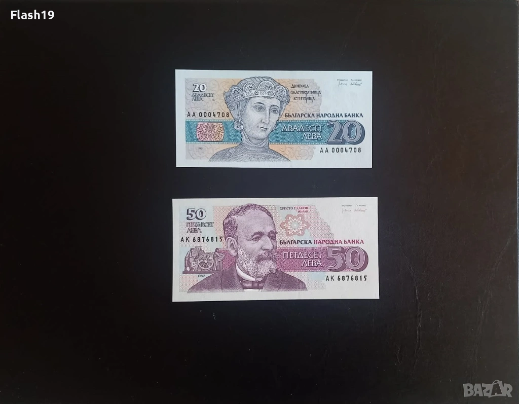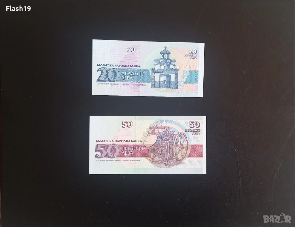 ⭐ България 20 и 50 лева 1991/1992 г. UNC ⭐ + подарък → Обява 53670871