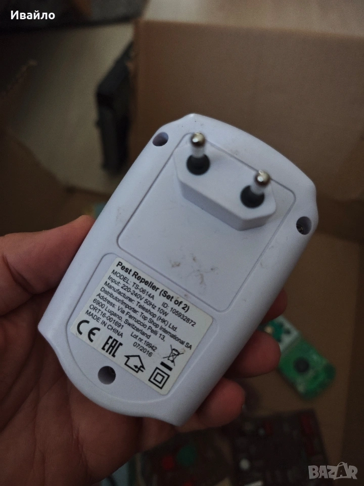 Продавам комплект от 2 броя ефективни електронни устройства за прогонване на вредители (мишки, плъхове и насекоми). Устройствата са внос от Швейцария (дистрибутор Teleshop International SA), което гарантира по-високо качество от масовите евтини аналози.