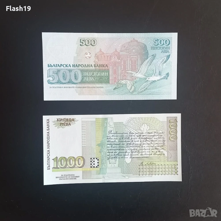⭐ 500 и 1000 лева 1993/1994 г. UNC ⭐, снимка 1 - Нумизматика и бонистика - 53670956 ⭐ 500 и 1000 лева 1993/1994 г. UNC ⭐, снимка 2 - Нумизматика и бонистика - 53670956 1/2