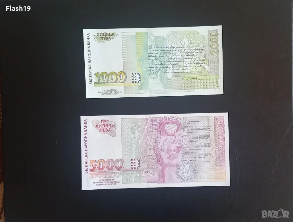 ⭐ България 1000 и 5000 лева 1997 г. UNC ⭐ + подарък → Обява 53670977