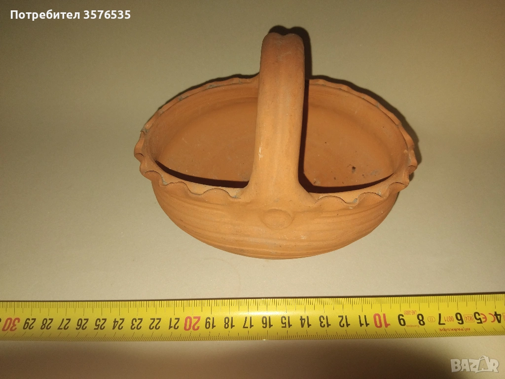 Саксия „Кошница“: Изработена от естествена теракота, в отлично