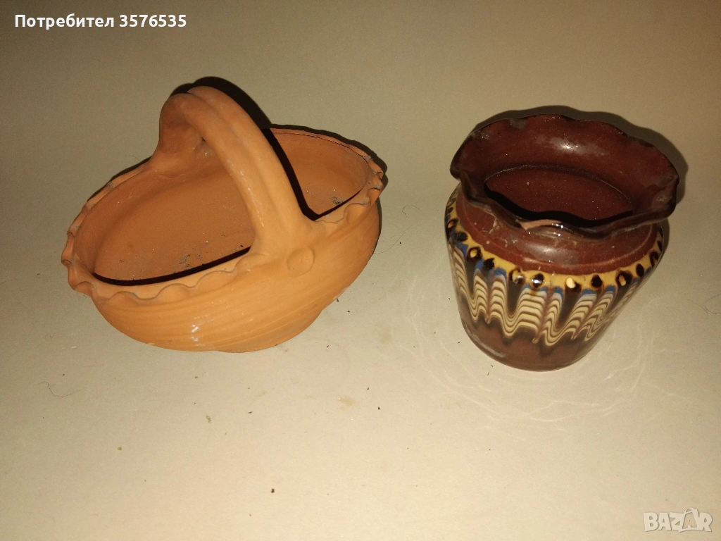 Лот 2 броя керамични саксии – битов стил (със забележка) → Обява 53670986