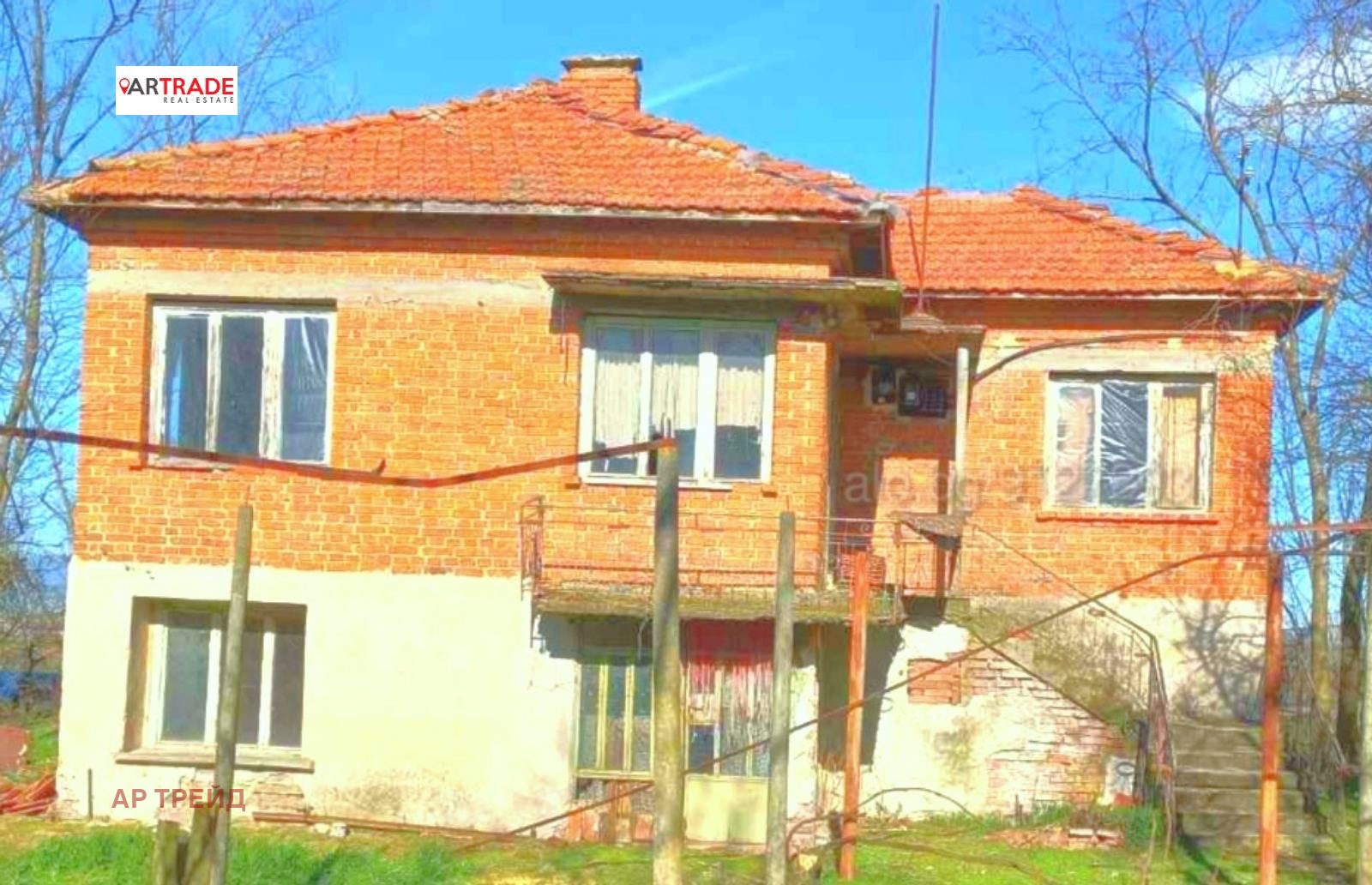 Къщата е със застроена площ от 210 кв.м със стомdнобетонна конструкция на два етажа, гараж , механа и допълнителна масивна постройка. Двора е терасиран и е с площ от 1000 кв.м тел- 0888508242