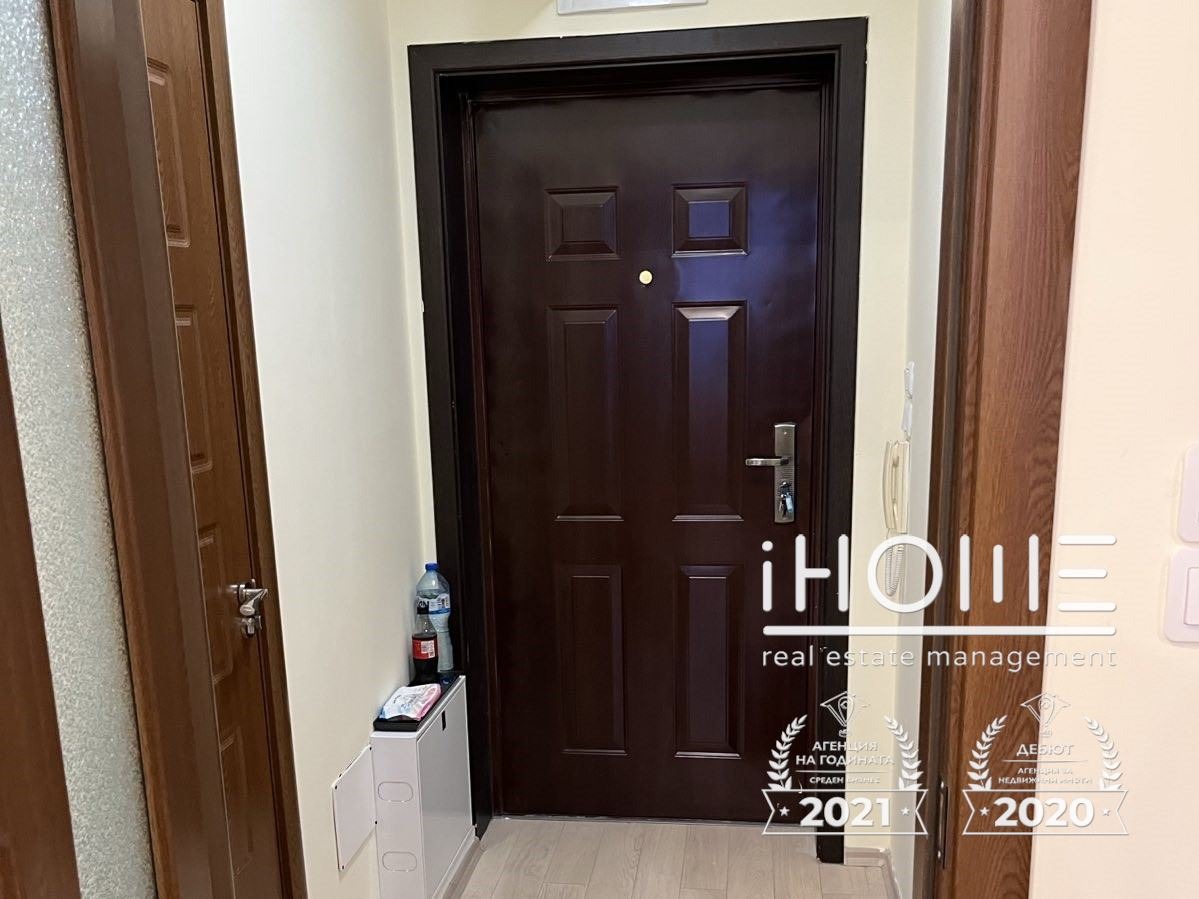 Имотът се намира в нова сграда с отлично поддържани общи части. Състои се от входно антре, дневна с кухненска част, и баня с тоалетна, Отопление е осигурено посредством инверторен климатик. Обзаведен с всичко необходимо за живеене, включително готварска печка, хладилник и пералня. Свободно паркиране около сградата.