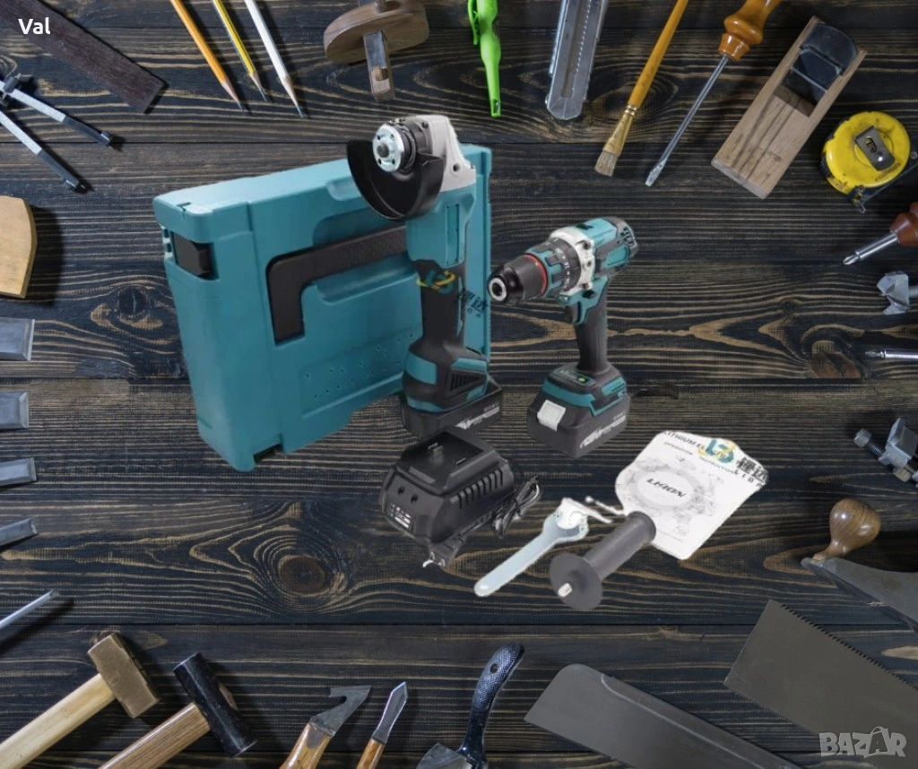 Акумулаторен ъглошлайф: Напрежение на батерията: 36V; Капацитет на батерията: 8Ah; Обороти без товар: 0-10,000 об./мин; Диаметър на диска: 125 мм; Тип мотор: Безчетков; Тегло: 2.5 кг; Време за зареждане: 1.5 часа; Продължителност на работа с едно зареждане: До 3 часа в зависимост от натоварването; Акумулаторен винтоверт с метална глава: Напрежение на батерията: 36V; Капацитет на батерията: 8Ah; Максимален въртящ момент: 60 Nm; Обороти без товар: 0-450/0-1,700 об./мин. (две скорости); Тип мотор: Безчетков; Диапазон на затягане: 1.5-13 мм; Тегло: 1.8 кг; Време за зареждане: 1.5 часа; Продължителност на работа с едно зареждане: До 4 часа в зависимост от натоварването.