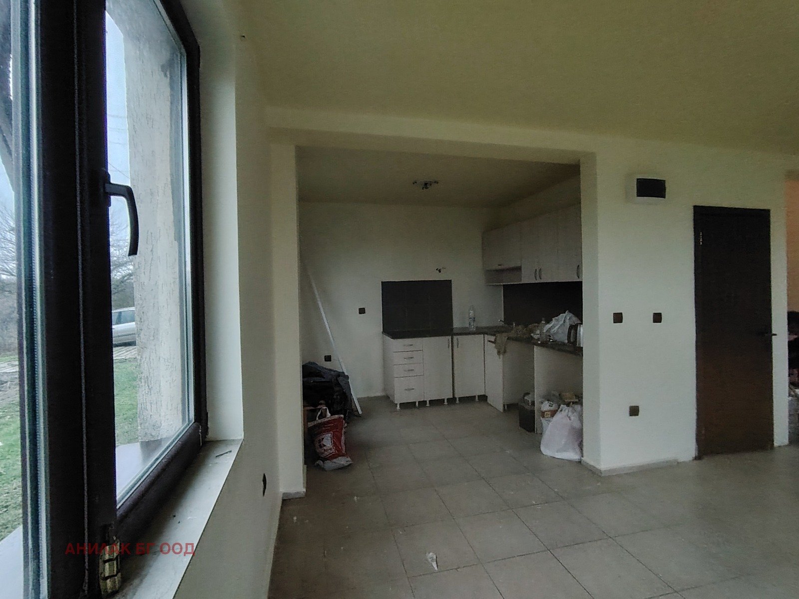 The house consists of floor 1: spacious and sunny living room/dining room and kitchen (open area type), toilet and internal staircase. There is a place for a fireplace in the living room.