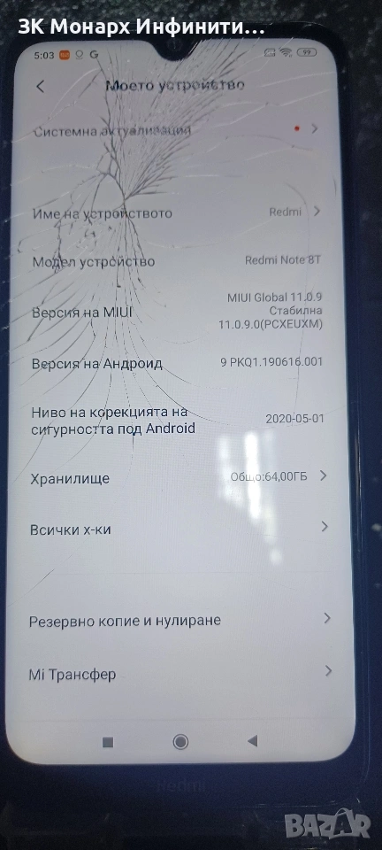 Телефон Redmi Note 8T /64GB /4GB RAM/спукан дисплей → Обява 53671663