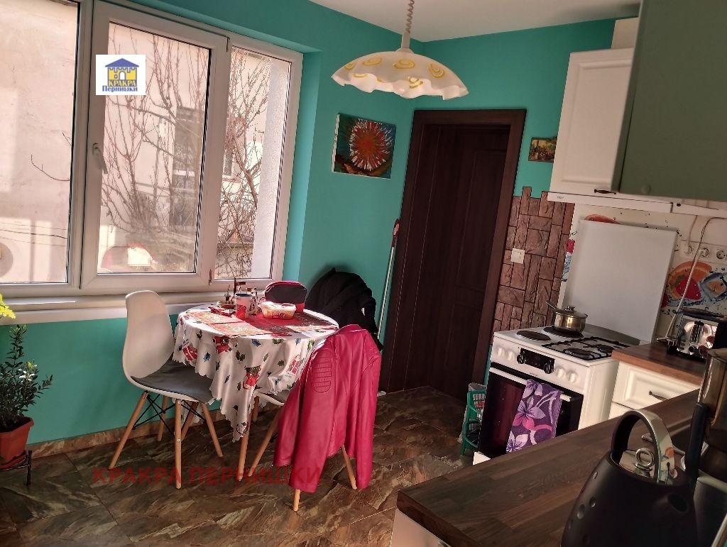 Кракра Пернишки предлага етаж от къща находящ се в непосредствена близост до болницата и центъра на града. Състои се от една по-голяма спалня, една по-малка спалня, хол и кухня. След основен ремонт и обзавеждане. Саниран.Изложение-югоизток. Етажът е със застроена площ от 72 кв.м. Към етажа има прилежащ гараж с площ 23 кв. М. Дворът, който е прилежащ към етажа е отпред, от към улицата и е много слънчев. Квадратурата му е 42 кв.м.Телефон за контакти: 0894330535 - Боряна Борисова