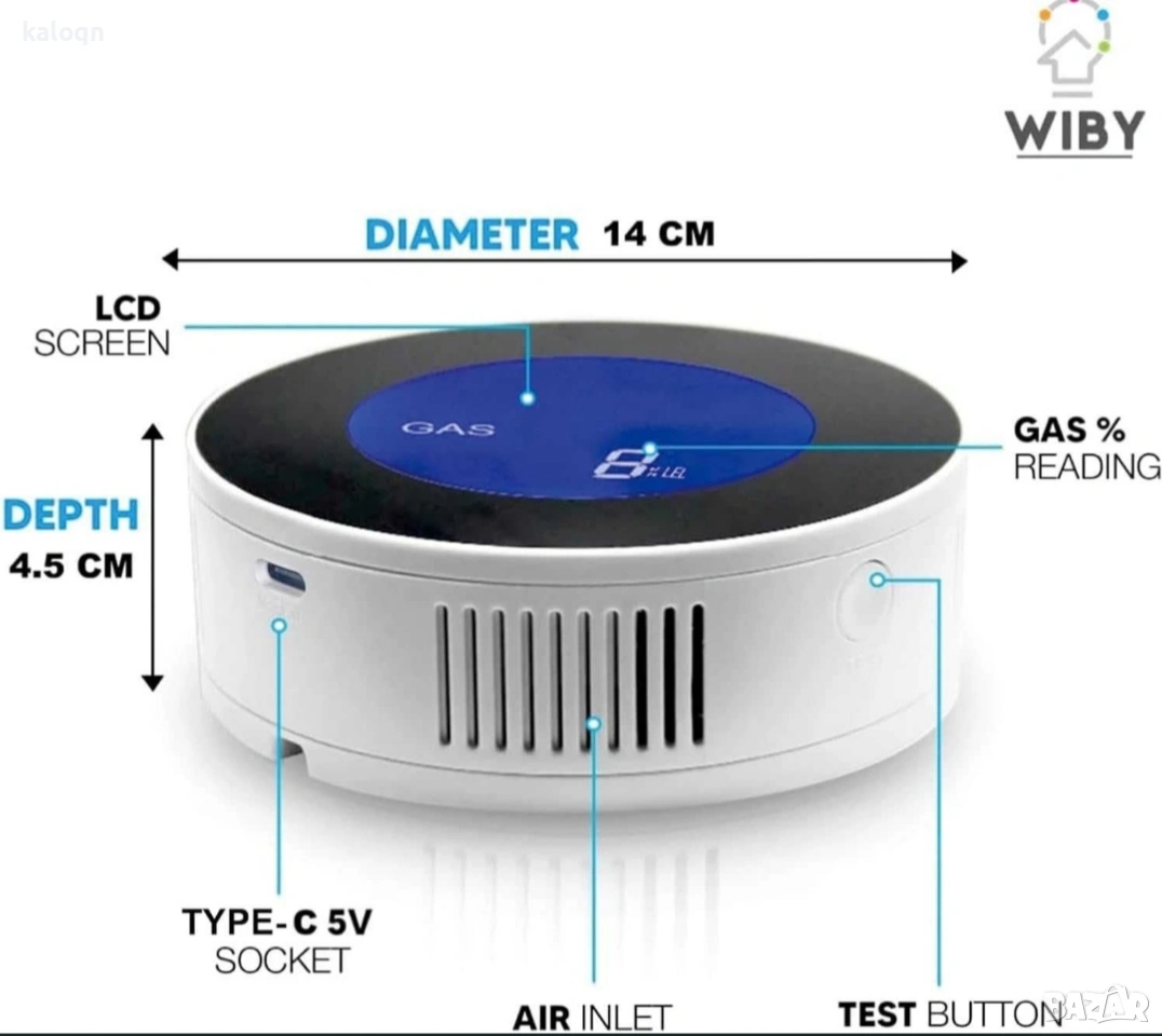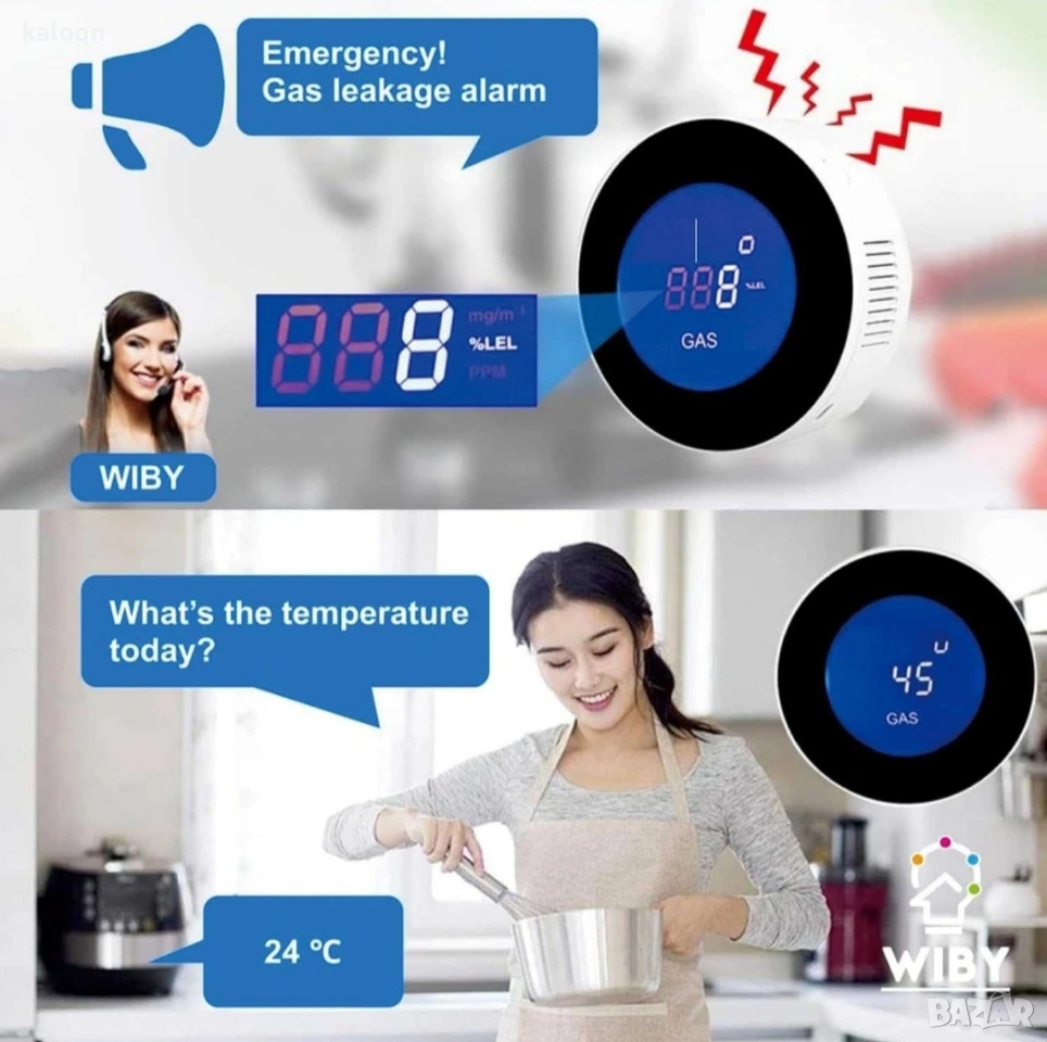 WiFi газодетектор, с LCD дисплей, съвместим с Alexa/Google Home