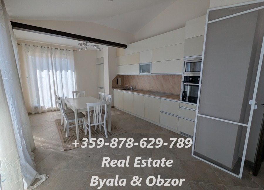 Кухнята е обзаведена с плот, фурна, аспиратор, голям хладилник и микровълнова. В стаите са монтирани КЛИМАТИЦИ.