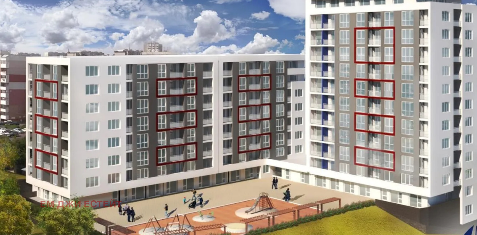 Разпределение: всекидневна с кухня, две спални, коридор, две бани с тоалетни ведно, склад, просторна тераса.