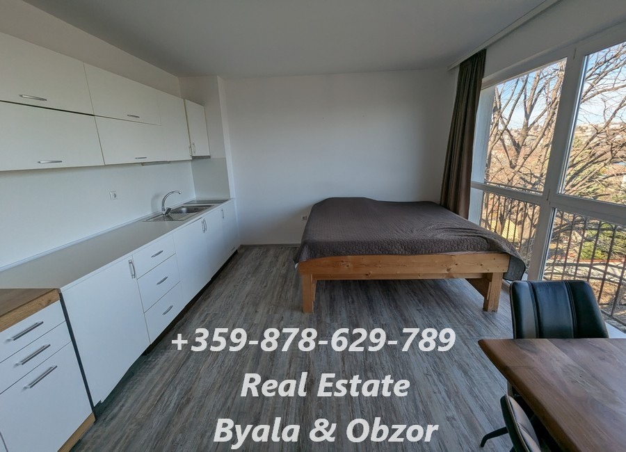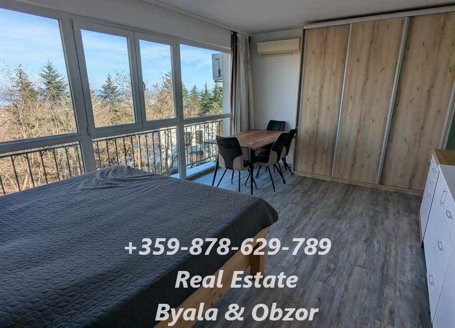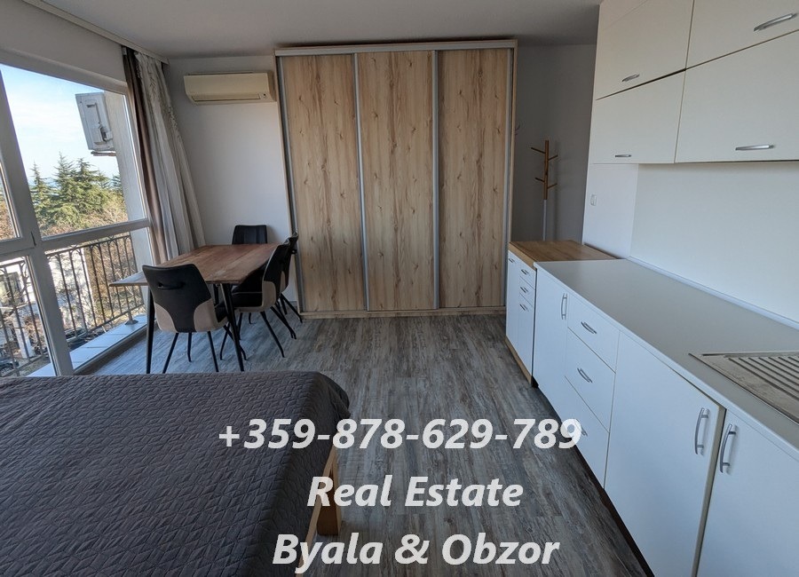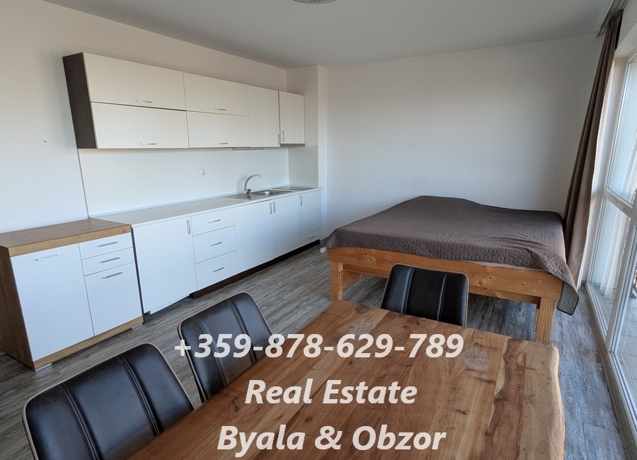 ОБЗАВЕЖДАНЕ: двойно легло с матрак, обедна маса със столове към нея, напълно оборудвана кухня, хладилник с височина 60 см, плот и аспиратор, пералня, климатик, голям и вместителен гардероб от пода до тавана, портманто, огледало. Баня разполага с подово отопление.