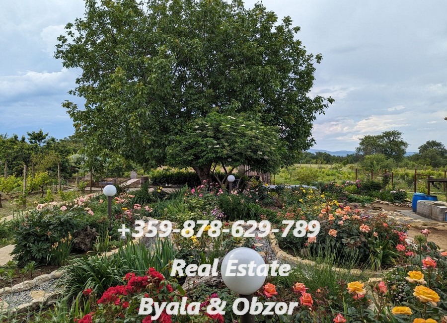 Парцелът е голям и има площ от 3000 кв.м. Територия е засадена с цветя, плодови дръвчата и красиво поддържана.