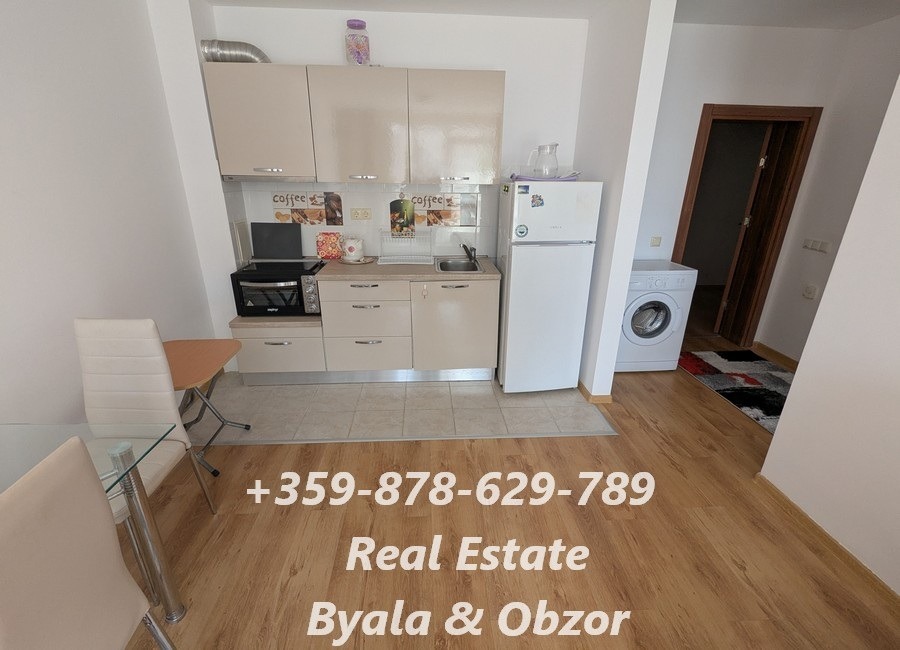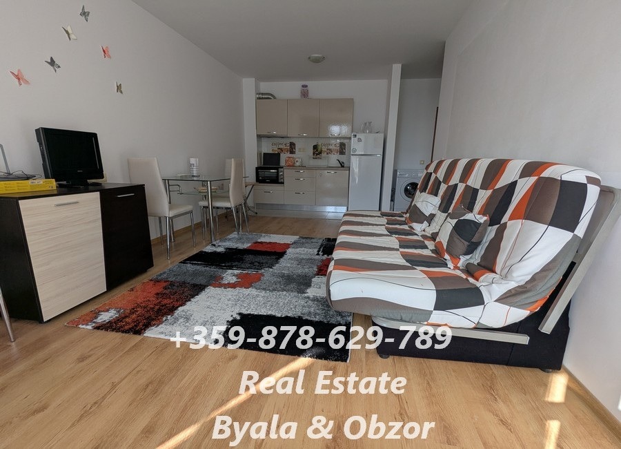 Всекидневната разполага с удобен голям разтегателен диван, телевизор, кухненски шкафове, маса със столове и кухненско оборудване: хладилник, малка готварска фурна, аспиратор, ПЕРАЛНЯ, КЛИМАТИК. Спалнята е оборудвана с двуспално легло с матрак. Сградата е разположена на 400 метра от плажа.