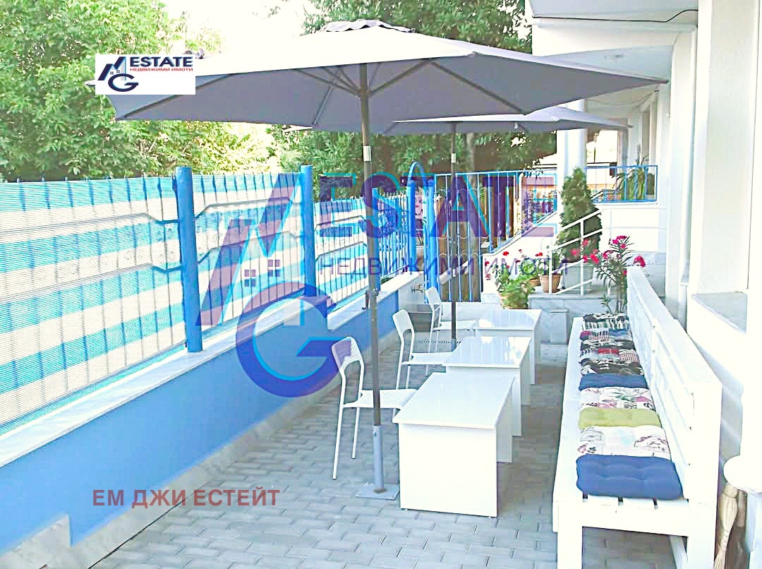 Първи етаж с площ 130.20 кв.м. - коридор ,четири студия, напълно обзаведени с нови мебели и техника, като във всяка стая има баня с тоалетна и тераса.