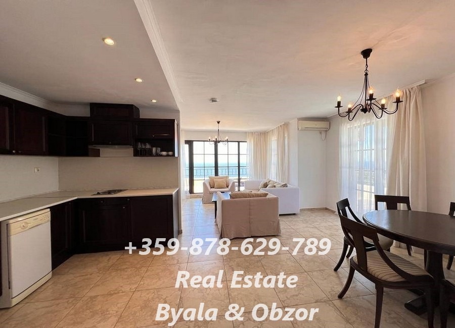Уникален тристаен апартаментът е мезонет, с площ от 200 кв.м, разположен на горния, шести етаж в луксозен жилищен комплекс на първа линия в град Обзор.