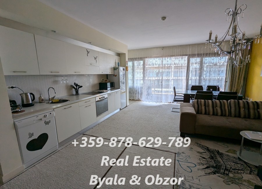 Апартаментът се състои от просторна всекидневна с кухня и трапезария в общо пространство, 3 спални, 2 бани с тоалетна, 2 големи просторни тераси с изглед към морето.