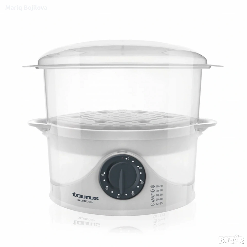 ♨️Уред за готвене на пара Taurus Salutecook 800W, 6 л, таймер 60 мин, 2 съда за готвене, съд за бял ориз