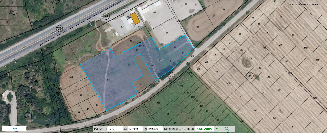 имот с идентификатор: 34120.80.56 е с площ 7829м2;