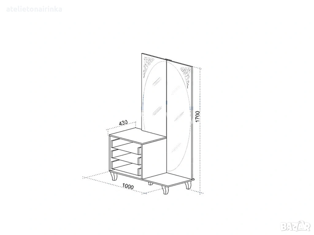 Размери на тоалетката: 100/ 43/ Н170 см;