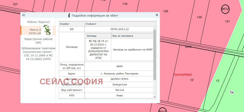 Продава ПАРЦЕЛ, гр. София, с. Кривина → Обява 53672731