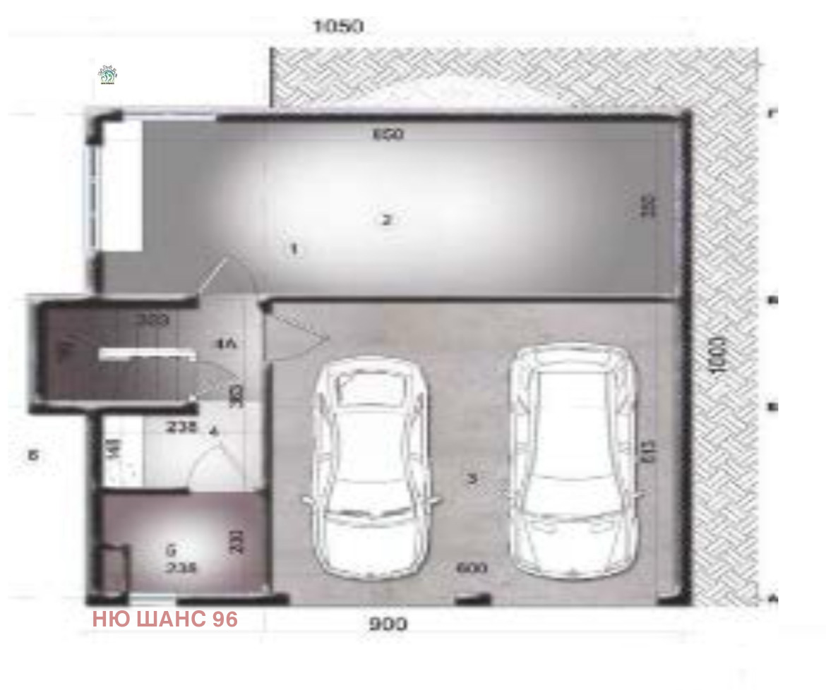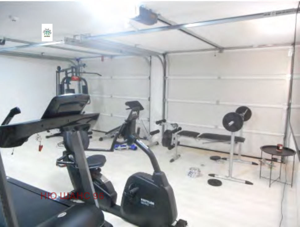 Приземен етаж коридор, фитнес със сауна, гараж за 2 коли, мокро помещение, техн.помещение, мокро помещение, склад, покрита гаражна рампа, гаражна рампа.