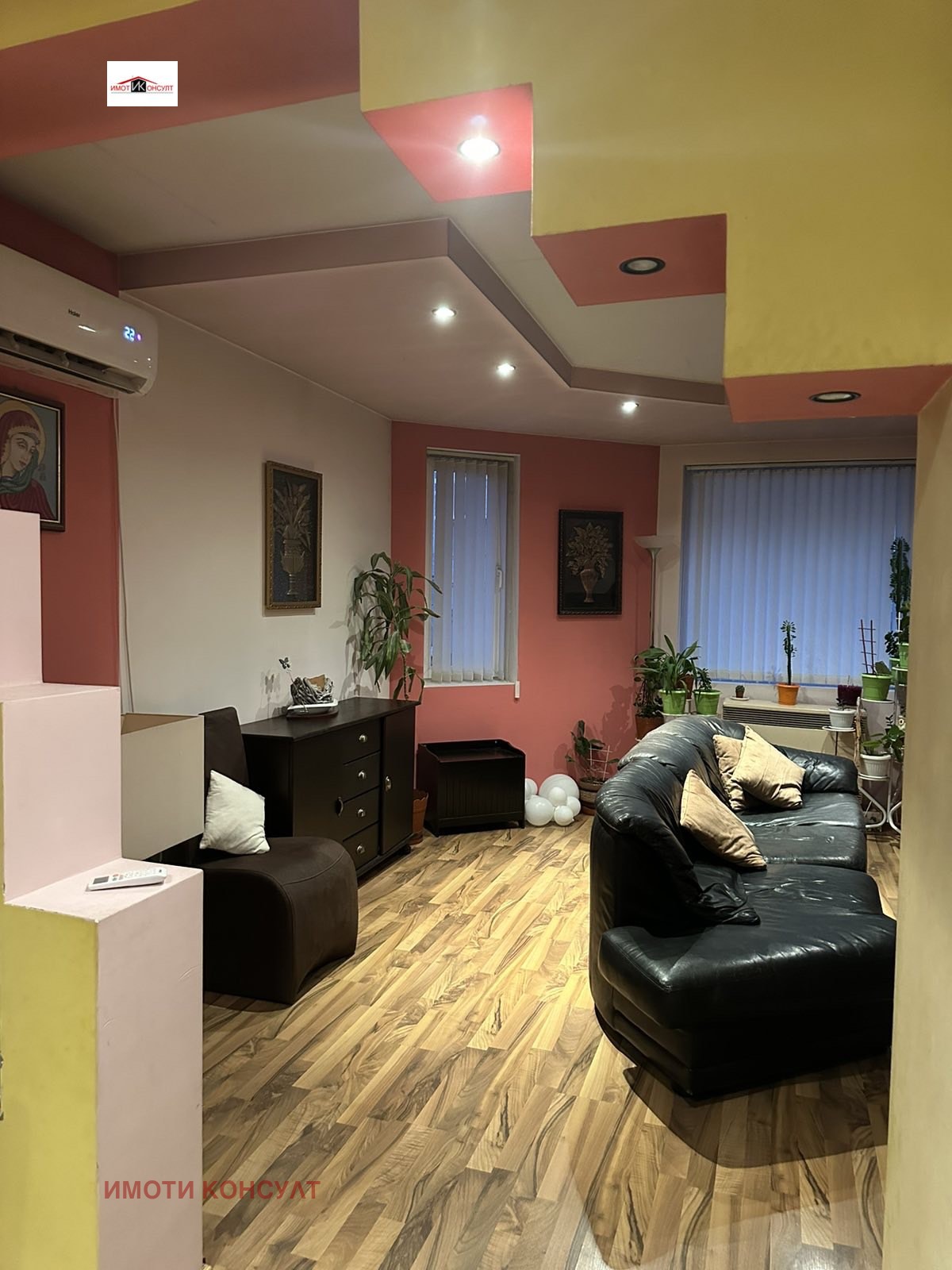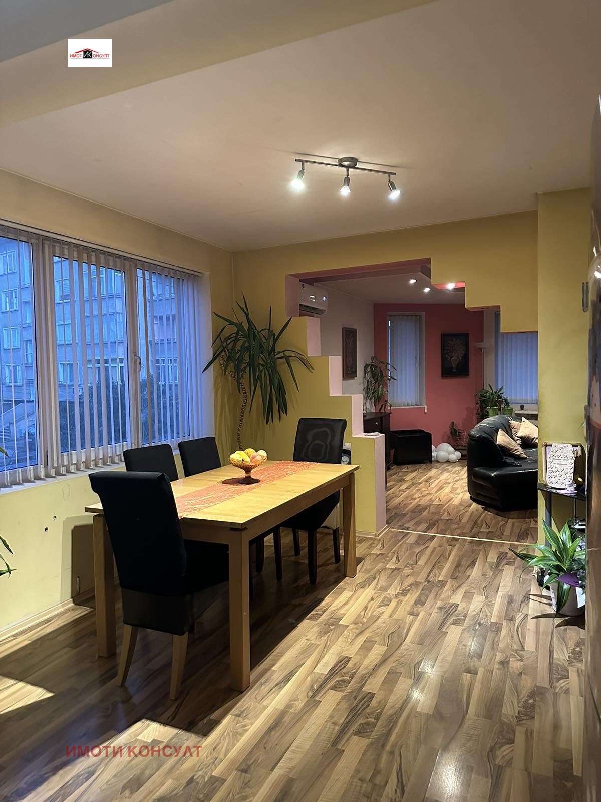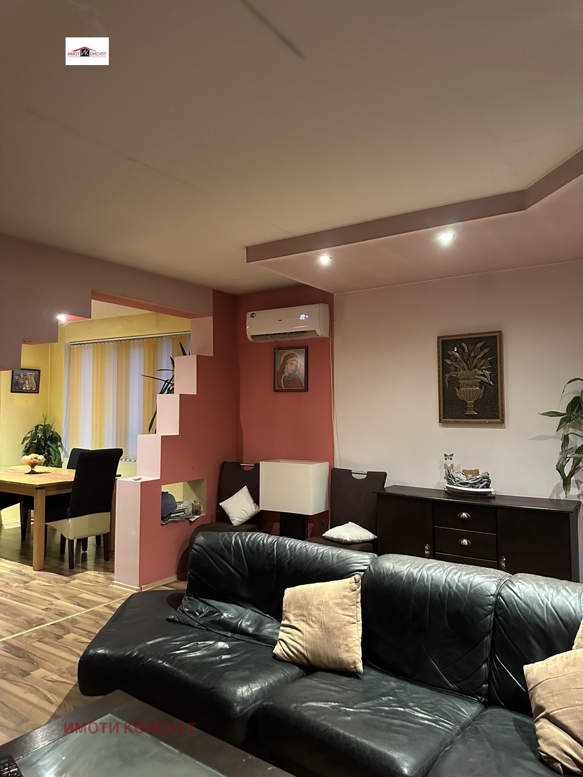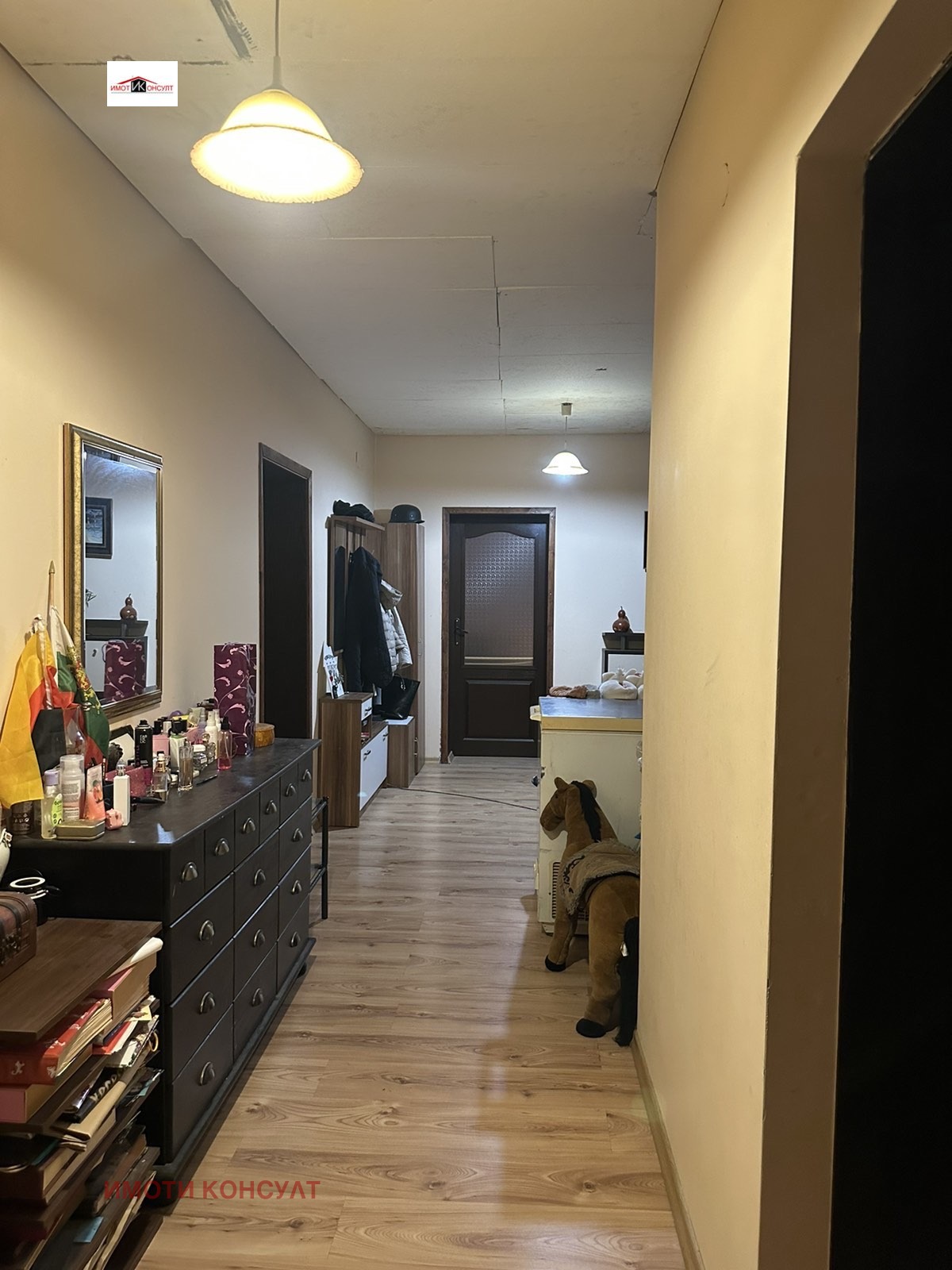 Агенция 'Имоти Консулт' Ви предлага етаж от къща в гр. Горна Оряховица. Предлагания имот е разположен на първи жилищен етаж, над гаражи и офис-помещения от триетажна кооперация и се състои от: голяма всекидневна с трапезария и кухненска част, три спални, килер, мокро помещение с тоалетна и отделн0- баня с тоалетна, както и голям коридор-преддверие. На всички стени и тавани е поставена топлоизолация и гипсокартон, както и PVC дограма. Целият етаж е 158кв.м. , предлага се с наличното обзавеждане. Към имота има гараж /23 кв. м/., който може да бъде закупен допълнително за 15000 . Ref.6255