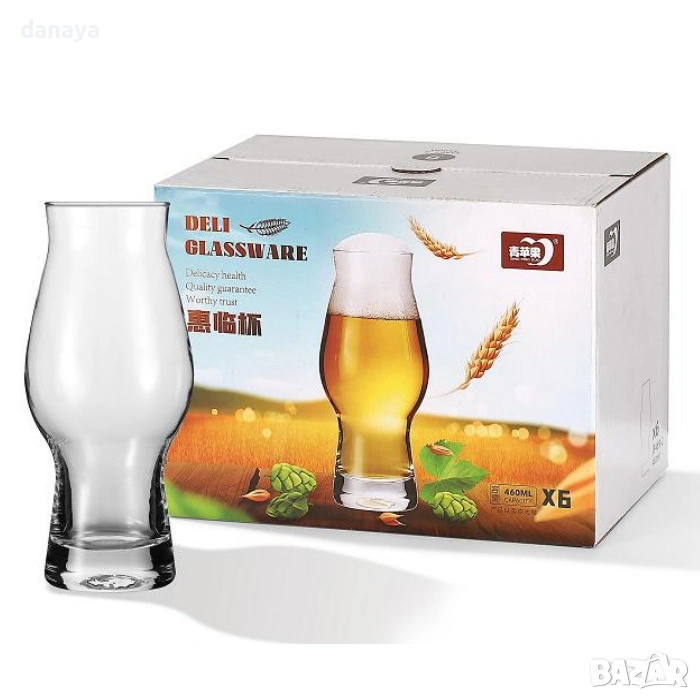 6324 Елегантни стъклени чаши за бира или коктейли, 6 броя