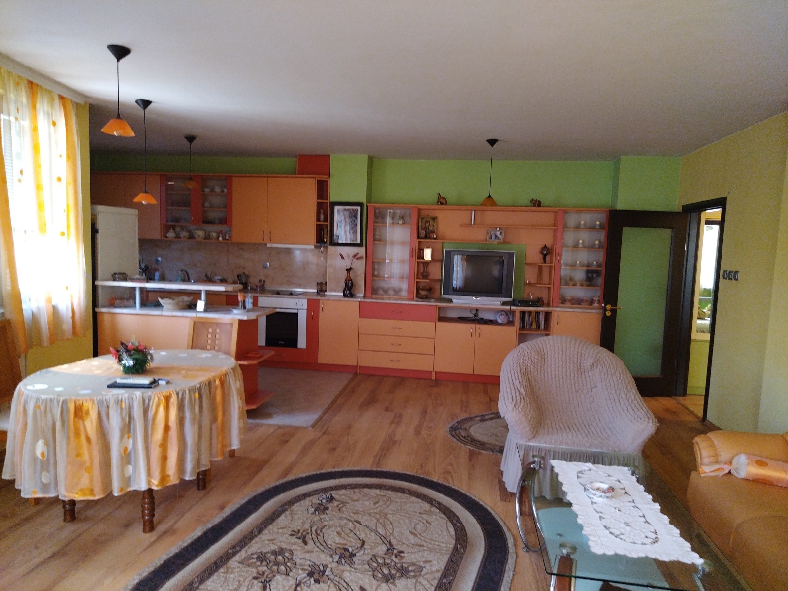 Продава тристаен апартамент в централната част на града с чиста жилищна площ от 105 кв.м, заедно с 450 кв.м идеална част от парцел с площ 763 кв.м върху който е построена кооперацията. В близост гара и автогара, съд, данъчна служба, детска градина и други институции. Разпределение: кухненски бокс, трапезария и хол в едно, две спални, санитарен възел, отделно тоалетна, която се ползва като мокро помещение, две тераси. Към апартамента има и мазе с площ 2.88 кв.м. Изложение югозапад, отопление на ток. Имотът се продава с наличното обзавеждане. За оглед на тел.0886/796902 Величка Маркова