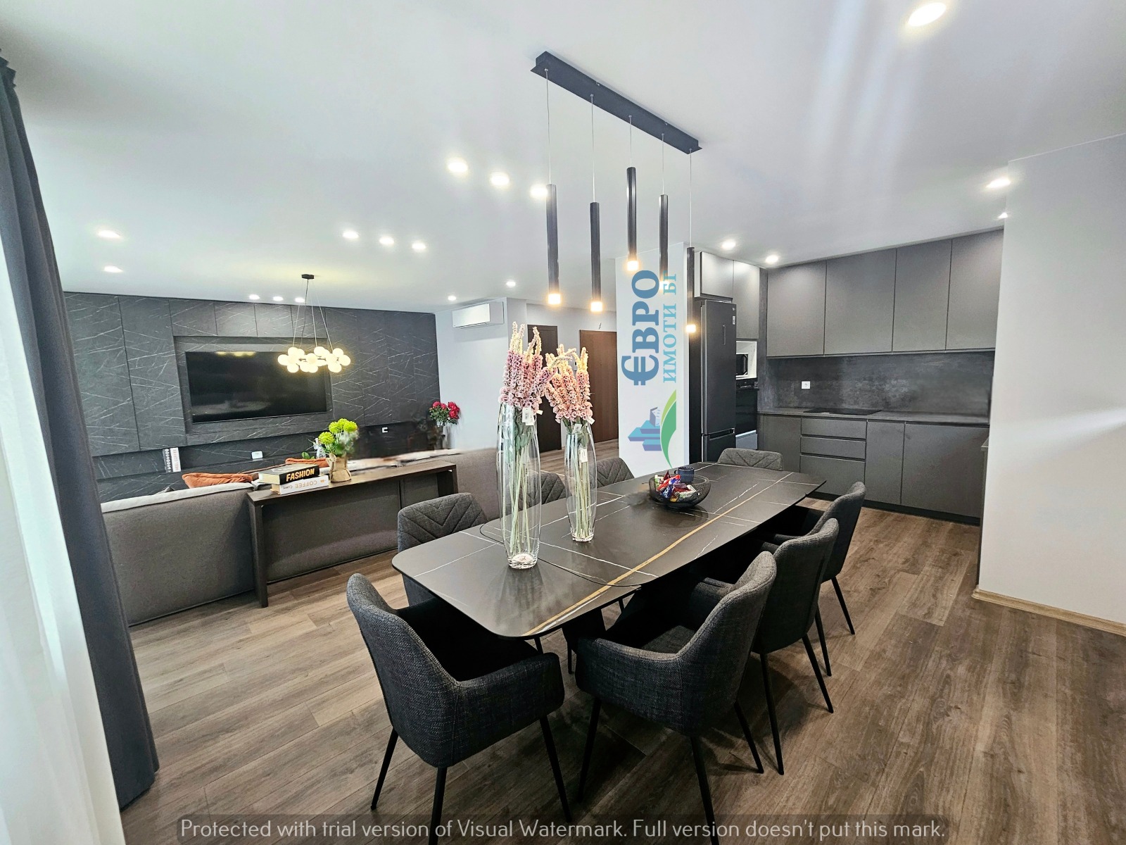 NEW, LUXURIOUS, ALMOST UNUSED, STYLISHLY FURNISHED APARTMENT with THREE BEDROOMS and PARKING SPACE included in the price with LOCATION: next to Paradise Mall/Vitosha metro station in a high-class gated complex with fitness, swimming pool, spa center, beautiful courtyard with playground and 24-hour security. LARGE LIVING ROOM with an area of 40 sq.m. with kitchenette and built-in kitchen with all appliances, THREE BEDROOMS, of which a MASTER BEDROOM with its own bathroom and walk-in closet, two terraces with an impressive view, second bathroom with WC and entrance hall. Kitchenette with built-in appliances: oven with ceramic hob, extractor hood, refrigerator with freezer, dishwasher, washing machine with dryer, installed outside the living room. The apartment is gasified and has a multi-split air conditioning system installed.