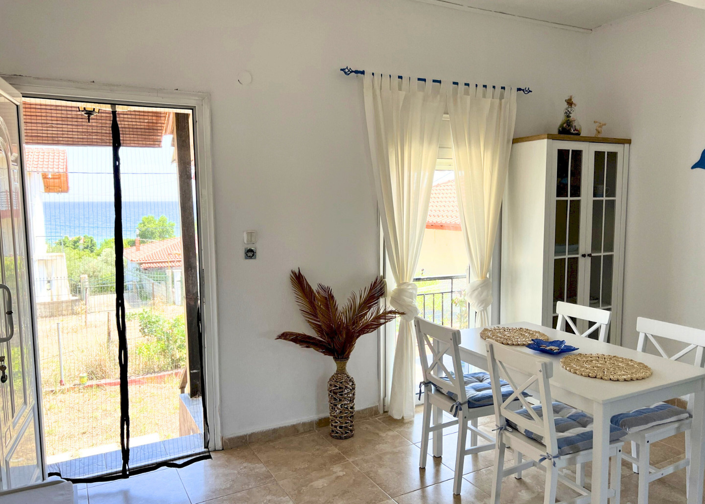Имотът е с площ от 60 кв.м и двор 375 кв.м. Намира се на изключително тихо и спокойно място с прекрасна гледка към морето. Къщата разполага с две самостоятелни спални, хол с трапезария, напълно оборудвана кухня с всичко необходимо за едно домакинство, чисто нов санитарен възел и слънчева тераса. Извършен е освежителен ремонт, като мебелите са подменени с нови.