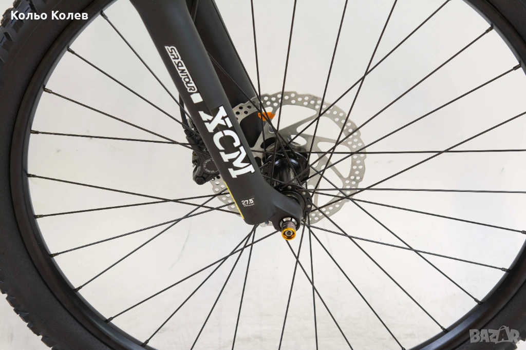 Предна вилка: 27 Suntour XCM32 Boost HLO,Travel-100MM, Axle-Thru axle ф15*110mm.