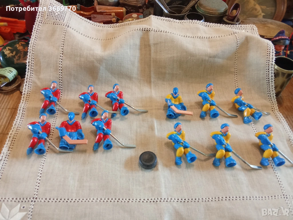 Отлична настолна игра за хокей на лед Styga Play off 21, размер 96х50х10 см. Играта е в много добро състояния, игрално поле без наранявания, всички играчи се движат, налични 4 отбора - два допълнителни. Кутията с нормално износване от времето. В момента играта не се предлага в страната, когато я внасят е на цена 101 евро. Играта е чудесна за малки и големи, а също и за колекционери.