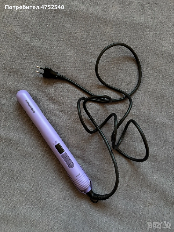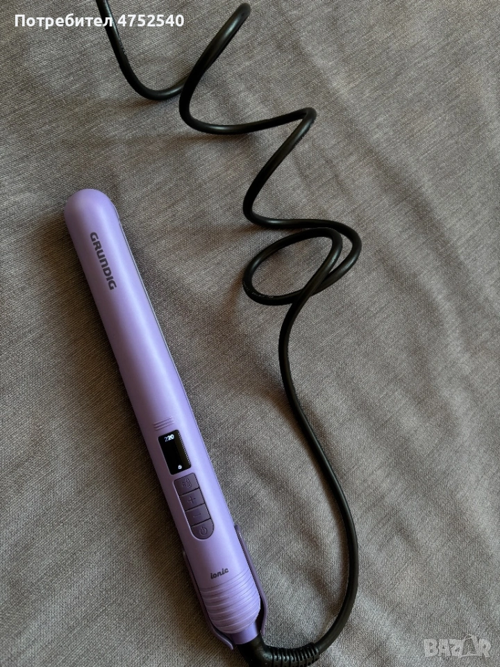 Преса за коса Grundig HS 7032 в отлично състояние, като нова. Пресата е с керамични плочи с лавандулово покритие, което спомага за запазване на естествената влага и блясъка на косата, като същевременно разпределя топлината равномерно и намалява риска от увреждане. Разполага с йонна функция против статично електричество за по-гладка и блестяща коса, турбо режим до 220°C за бързо оформяне, функция памет за последната настройка и автоматично изключване след 60 минути за по-голяма безопасност.