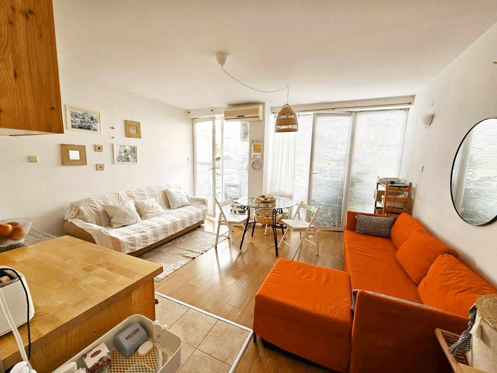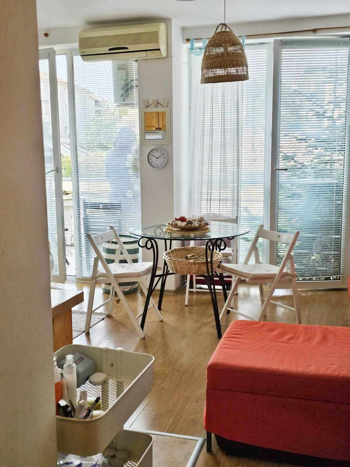 Напълно обзаведено стилно и уютно студио в сърцето на град Обзор, топ център, 180 м от морето! Комплексът е разположен до живописен парк с дървета, където винаги се усеща приятен бриз и можете да се отпуснете дори в най-горещите часове. Красивия и скоро реновиран централен площад с фонтан е на 20 м разстояние, а наоколо ще откриете множество магазини и заведения за обществено хранене. В непосредствена близост са разположени банки, училище, поща, аптеки и всичко необходимо за цивилизования човек. Апартаментът се предлага напълно обзаведен и оборудван с нови домакински уреди: печка с фурна, аспиратор, хладилник, климатик, пералня и бойлер. През 2022 г. е извършен козметичен ремонт. Студиото е идеално за постоянно пребиваване, сезонна почивка и има отличен потенциал за отдаване под наем. Към сградата е на разположение открит басейн и паркинг. Сградата е санирана и изградена през 2007г. Годишна такса за поддръжка 250 евро. Централният плаж на Обзор носи син флаг отличителен знак за висок стандарт на чистота на морската вода!