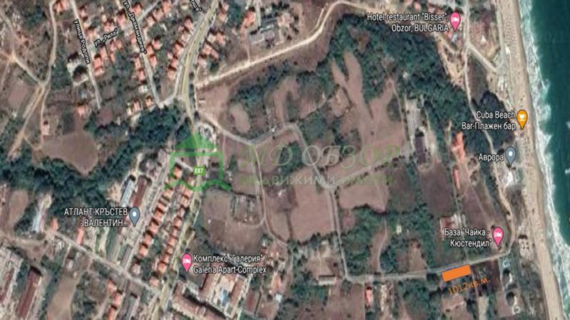 Имота е разположен в южната част на курорта, с предназначение 'урбанизиран' и начин на трайно ползване 'за почивен лагер', попадащ в обхвата на процедиращ се план за улична и дворищна регулация на жилищна зона 'Южен плаж' гр. Обзор. Лице 61м. към съществуващ асфалтов път. От главния път Бургас - Варна е на разстояние 600м., до плажа 130м., а до градската част на Обзор разстоянието е 420м. В съседство има новоизграждащи се жилищни и почивни бази. В имота има разположени две едноетажни туристически сгради на площ от 77кв.м. и 16кв.м., които са водоснабдени и електрифицирани, но не са предмет на настоящото предложение. Подходящ за жилищни сгради или къмпинг.