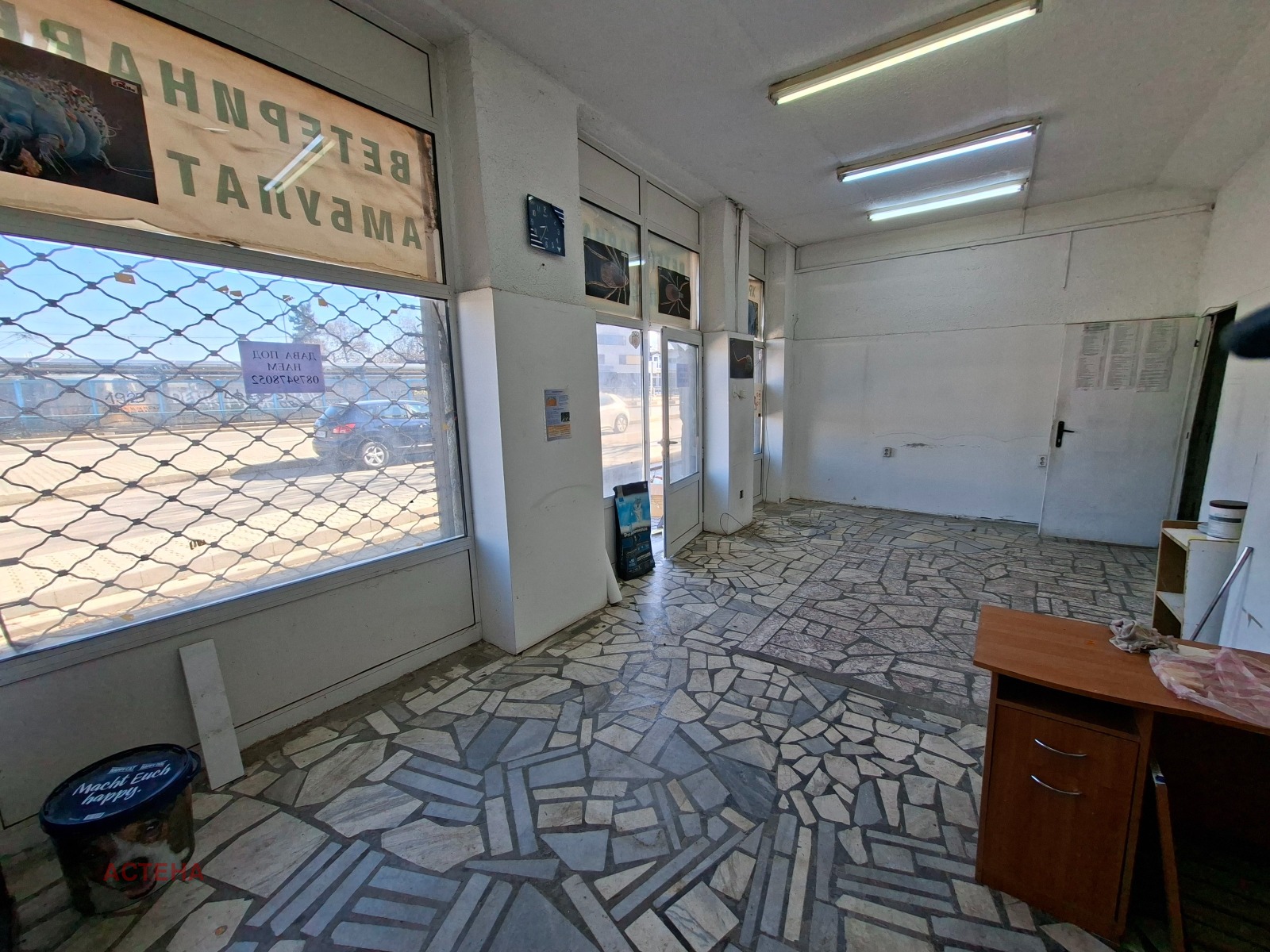 Магазинът се намира на бул.Христо Ботев 169, близо до Централна гара, непосредствено зад спирките на трамваите и автобусите в стара сграда. Състои се от голяма търговска зала, която е около 35 кв.м, две складови помещения, WC. Има два входа. Лицето към булеварда е голямо, чрез 3 витрини. Дограмата е PVC. Има външни ролетни шори, тип решетки. Магазинът се нуждае от съвременен ремонт, за което ще бъде предоставен гратисен период. Дълги години е бил ветеринарна аптека. За контакти: 0879478052 - Марияна Попова